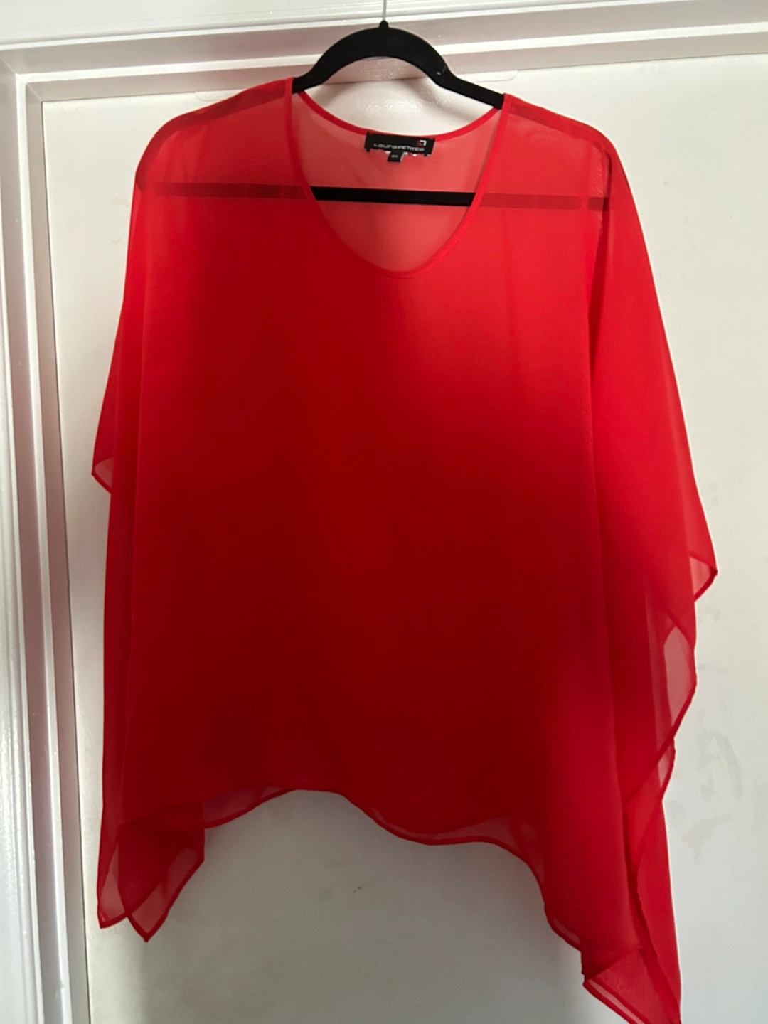 Selling a Laura Petites blouse in a vibrant coral colour! It's a size G/L, and the material is lightweight and flowy, perfect for layering or wearing on its own. It's in great condition and ready for a new home! Very loose fitting