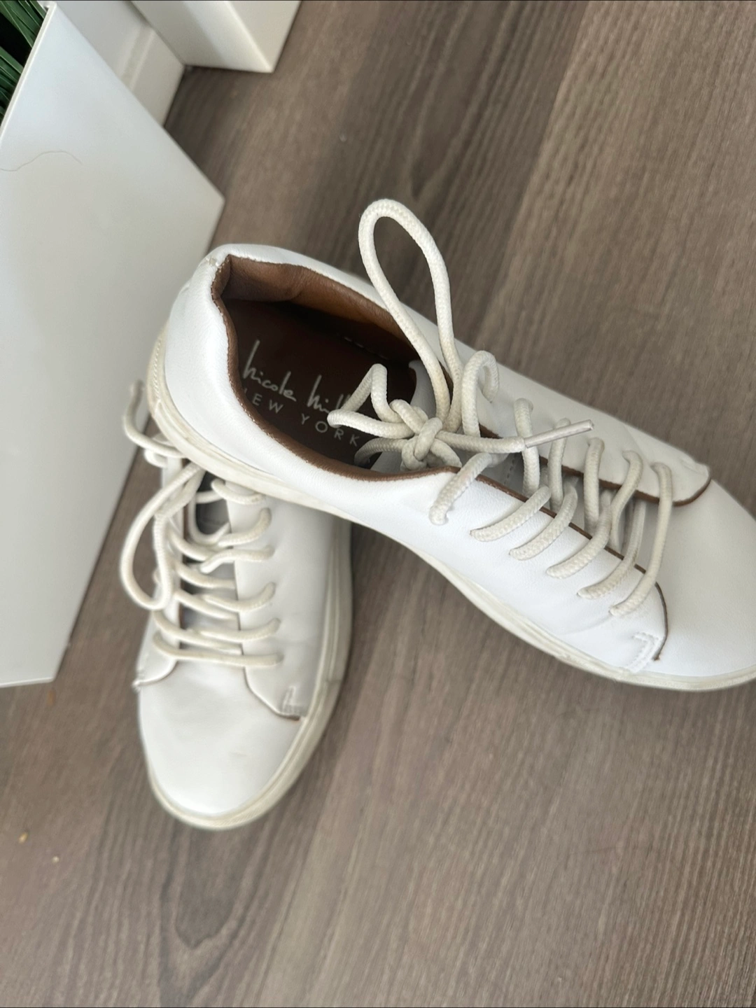 Worn once. These Nicole Miller New York sneakers are a classic and versatile addition to any wardrobe! They're in great condition and ready for a new home. The white colour makes them easy to pair with any outfit