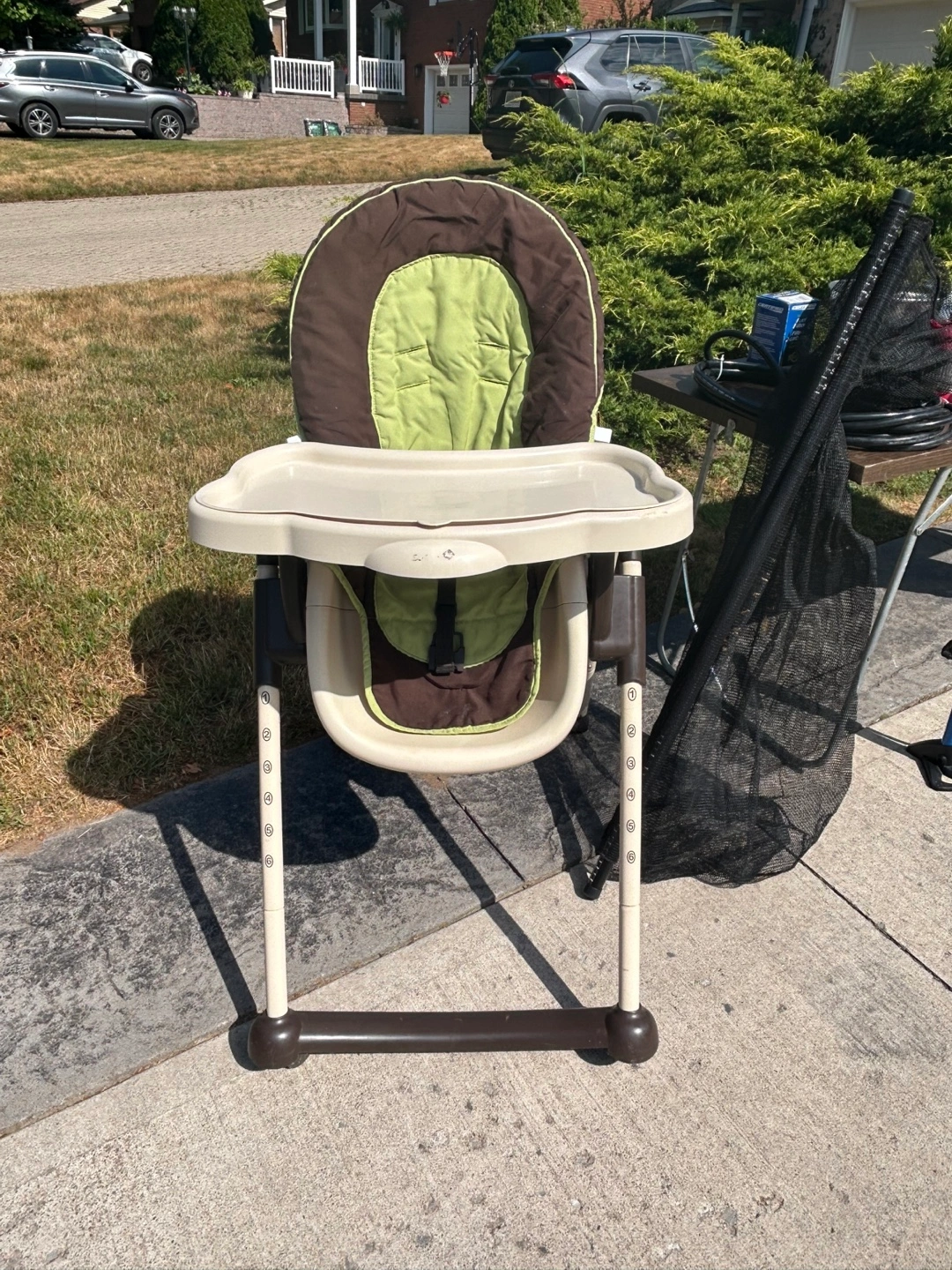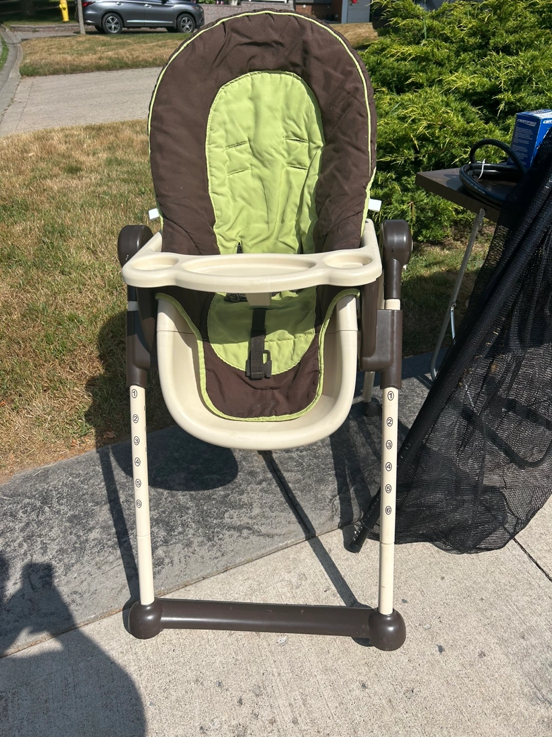 Selling a gently used high chair in brown and green. It's in great condition and ready for a new home. Perfect for meal times with your little one! Used at grandmas house.
