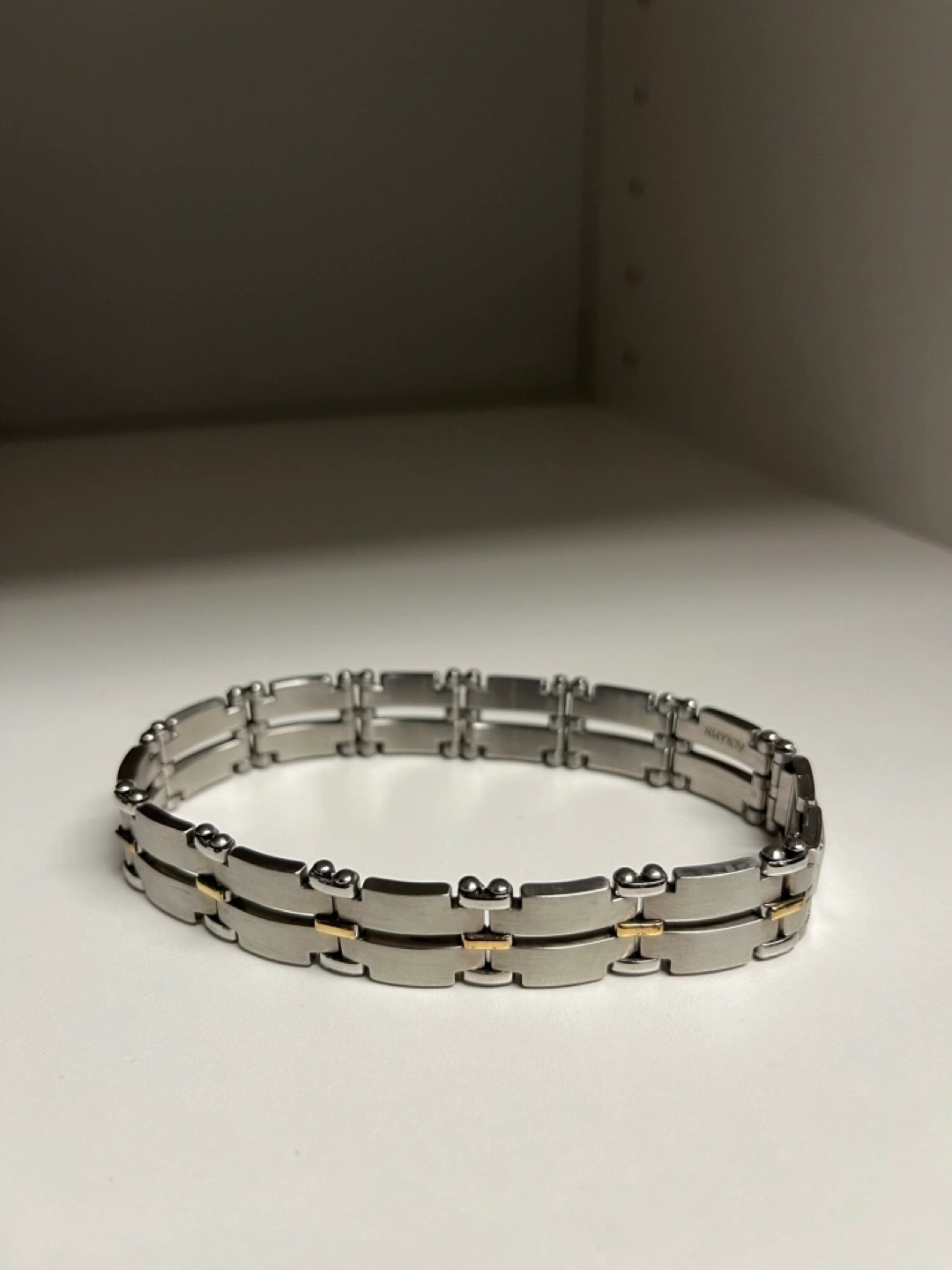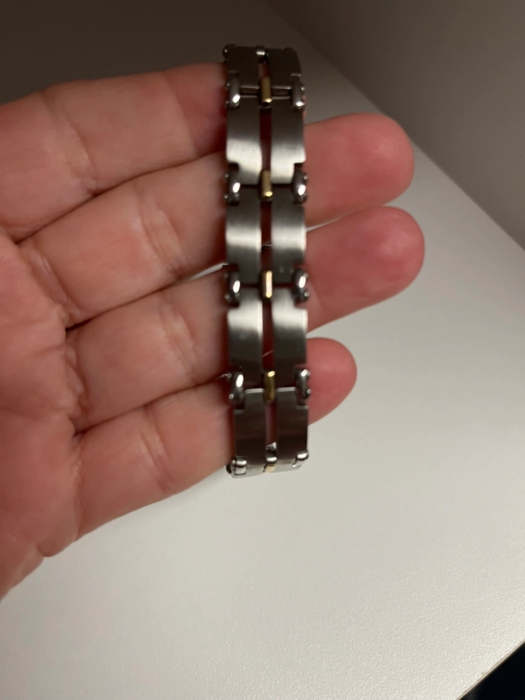 Mens stainless steel link bracelet. Made in Italy. Silver and 18k gold links. Cash only Bathurst And Steeles Pick up