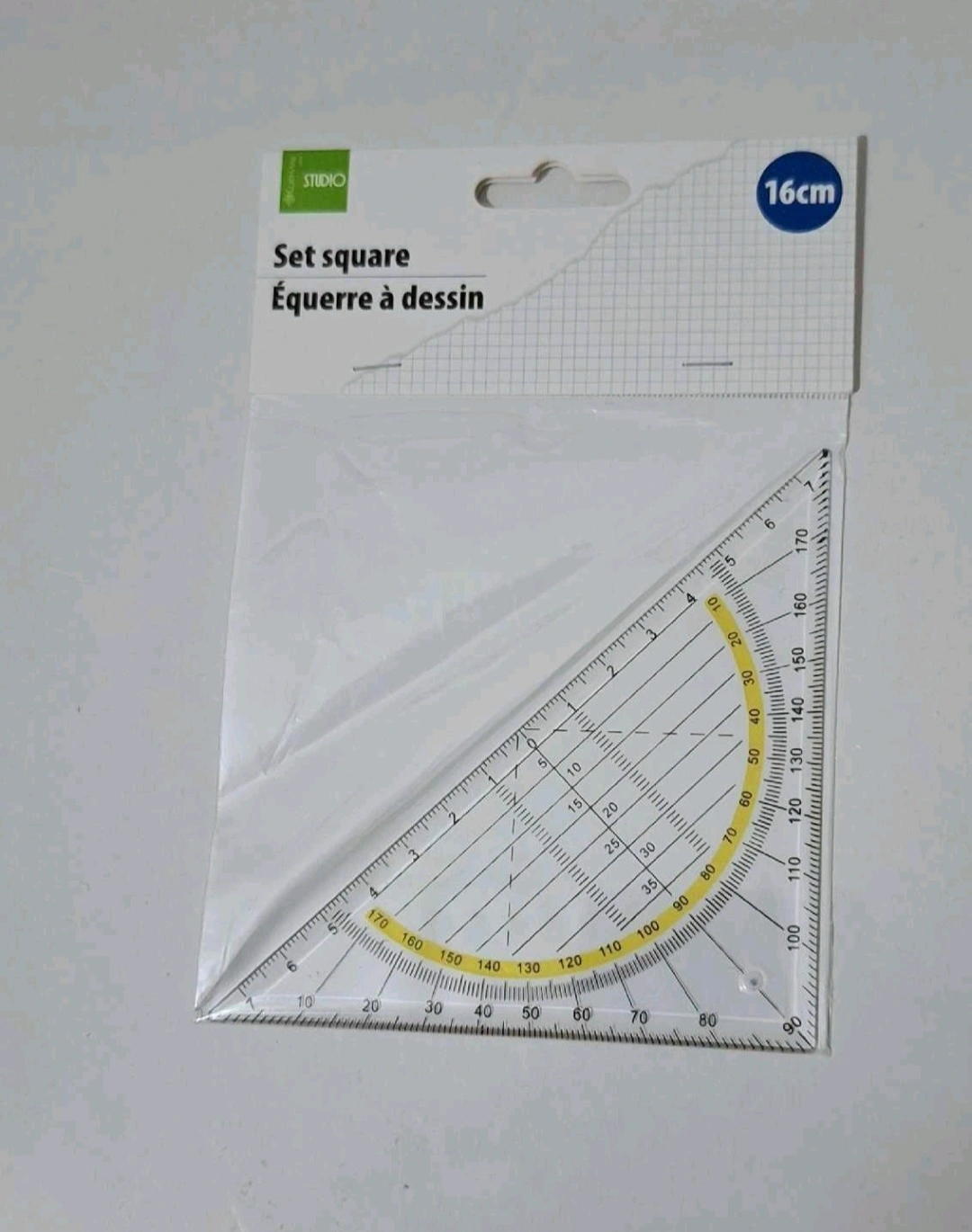 Selling a brand new Studio set square, still in its original packaging! It's 16cm and ready to help with all your drawing needs. I am giving away for free as I bought this thinking I would need it someday, one day. Its been over 365 days...