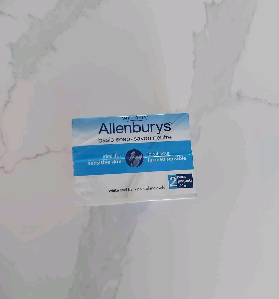 Selling a 2-pack of Allenburys basic soap, ideal for sensitive skin. It's a white oval bar, 100g each. Great for everyday use! I am giving it away as our family prefers a different brand.