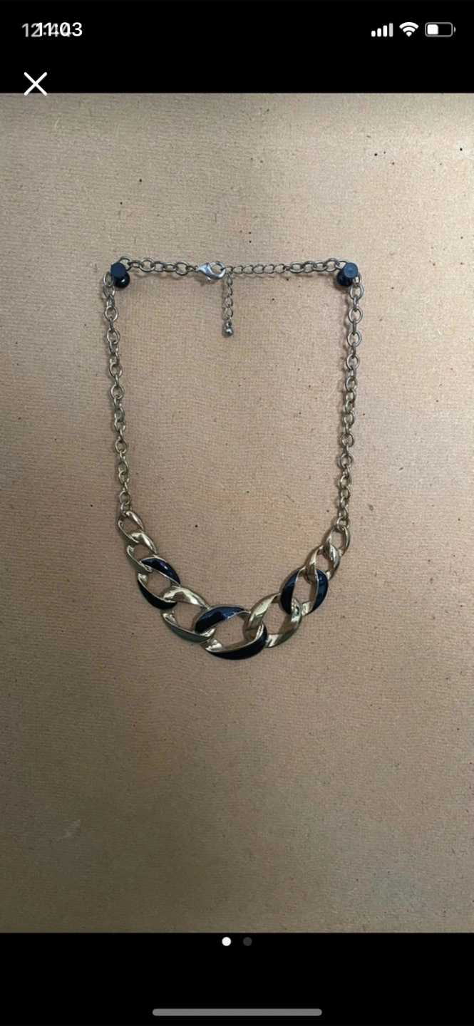 This is a stylish chain link necklace featuring gold and black links. It's in great condition and ready to add a touch of elegance to your outfit!