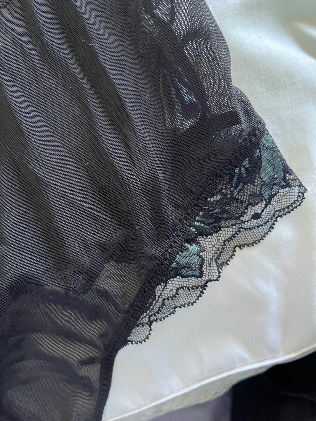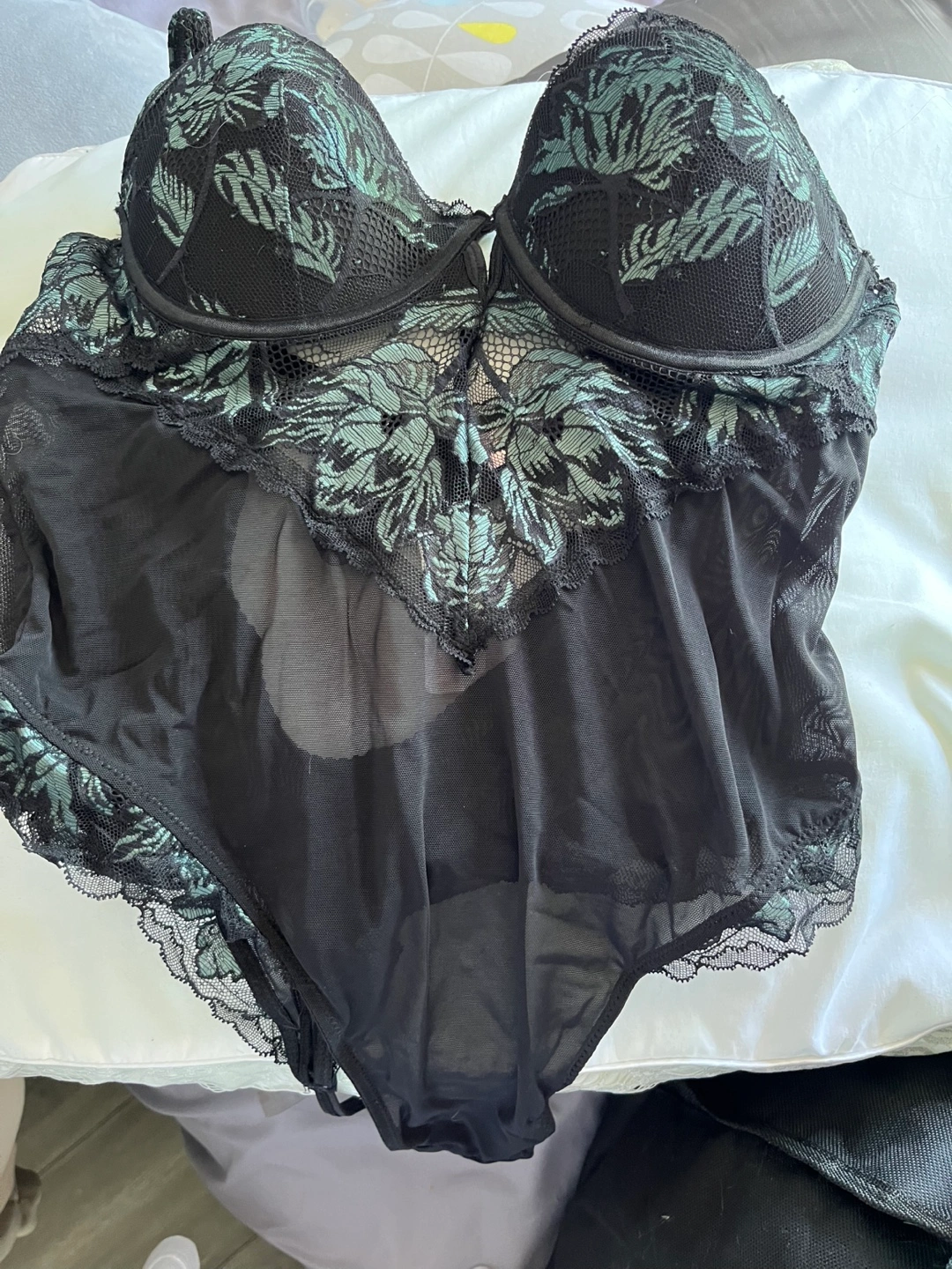 Here's a beautiful black bodysuit with floral lace detailing! It's still got the tags! From La Vie en rose!! Original price on tag is $34