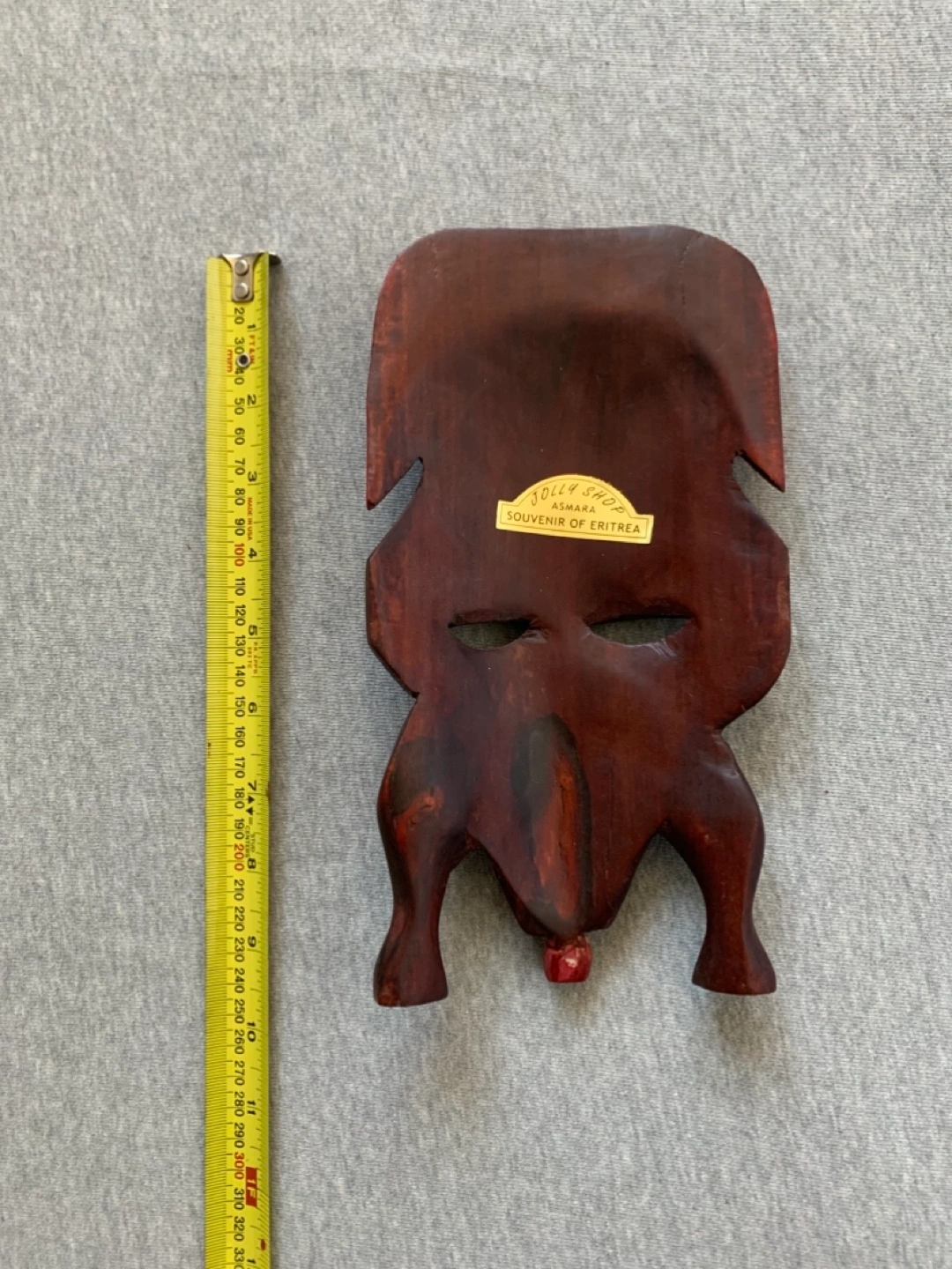 From Jolly Shop Asmara in Eritrea. It's a unique piece of art with a rich, dark wood finish and intricate carvings. Perfect for adding a touch of cultural flair to your home decor!