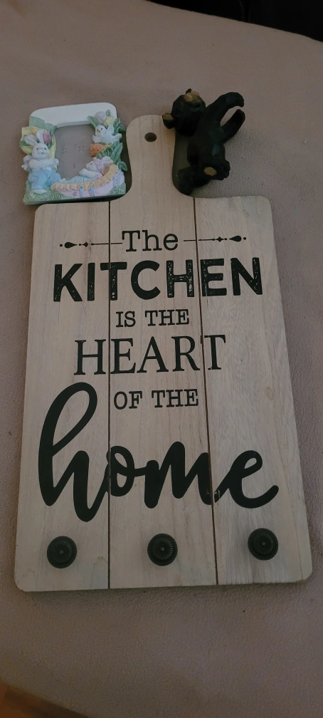 Cute wall decor for the kitchen! It has a rustic look and would be perfect for hanging aprons or dish towels
