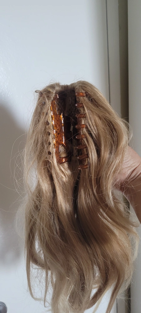 I'm giving away this blonde claw clip ponytail extension! It's a super easy way to add some volume and length to your hair in seconds. The claw clip makes it really secure and comfortable to wear. It's in great condition and ready for a new home!