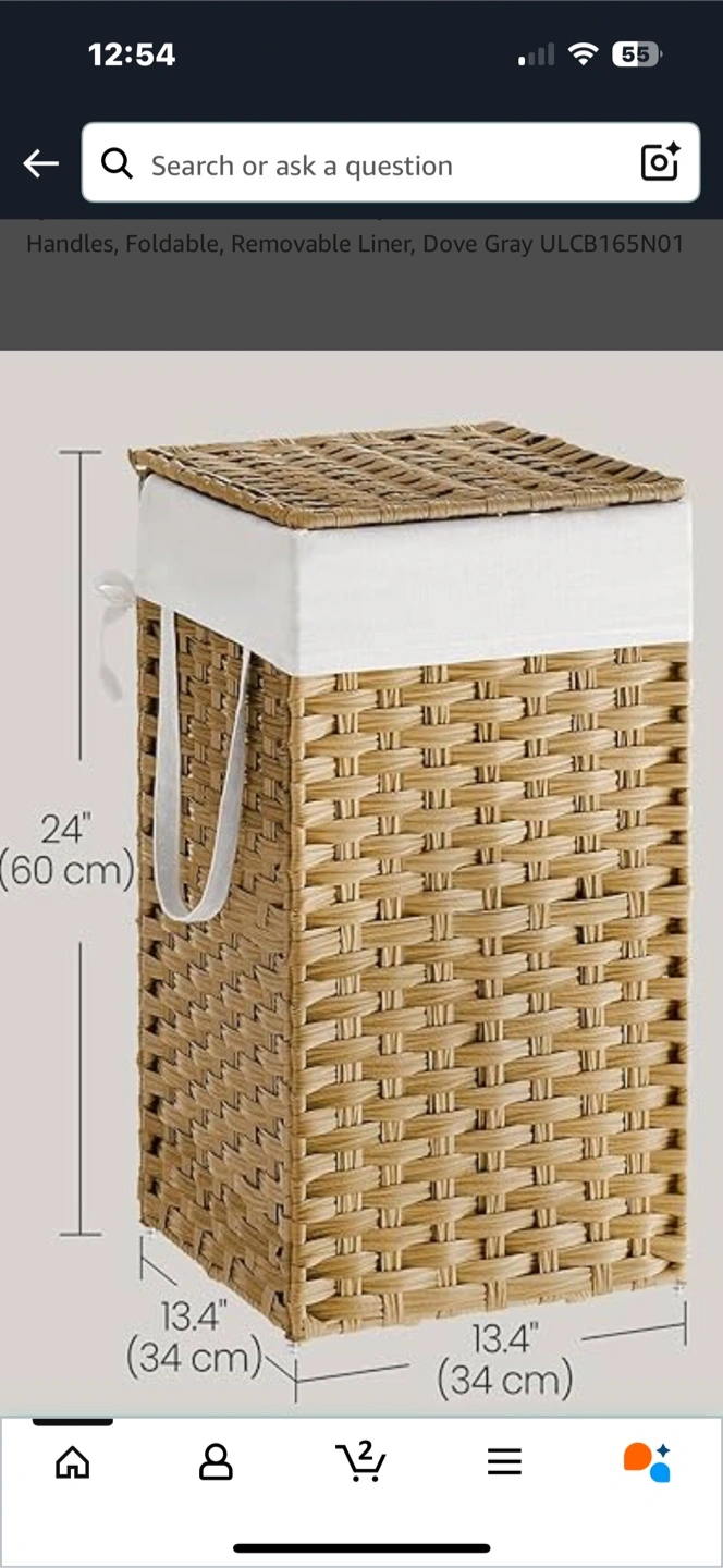 Looking to declutter your laundry space? I'm selling a lovely wicker laundry hamper with a lid! It has a removable liner and convenient handles for easy moving. The hamper is made of PP plastic rattan, making it waterproof and moisture-proof. Dimensions are 24" (60 cm) in height and 13.4" (34 cm) in width and depth