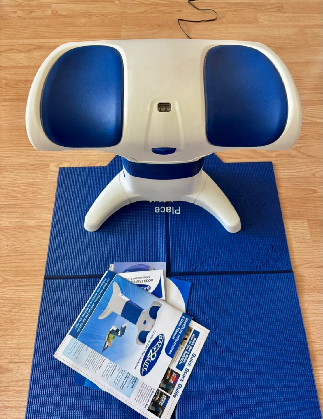 Get relief from back pain with the Back2Life system! This system includes the Back2Life device, a mat, and ankle weights to help you relax and release pressure on your spine. It also includes a Quick Start Guide and User Manual. Gently loved. The regular price was $225 and it’s been in pet and smoke free storage for a few years. A harder to find item.