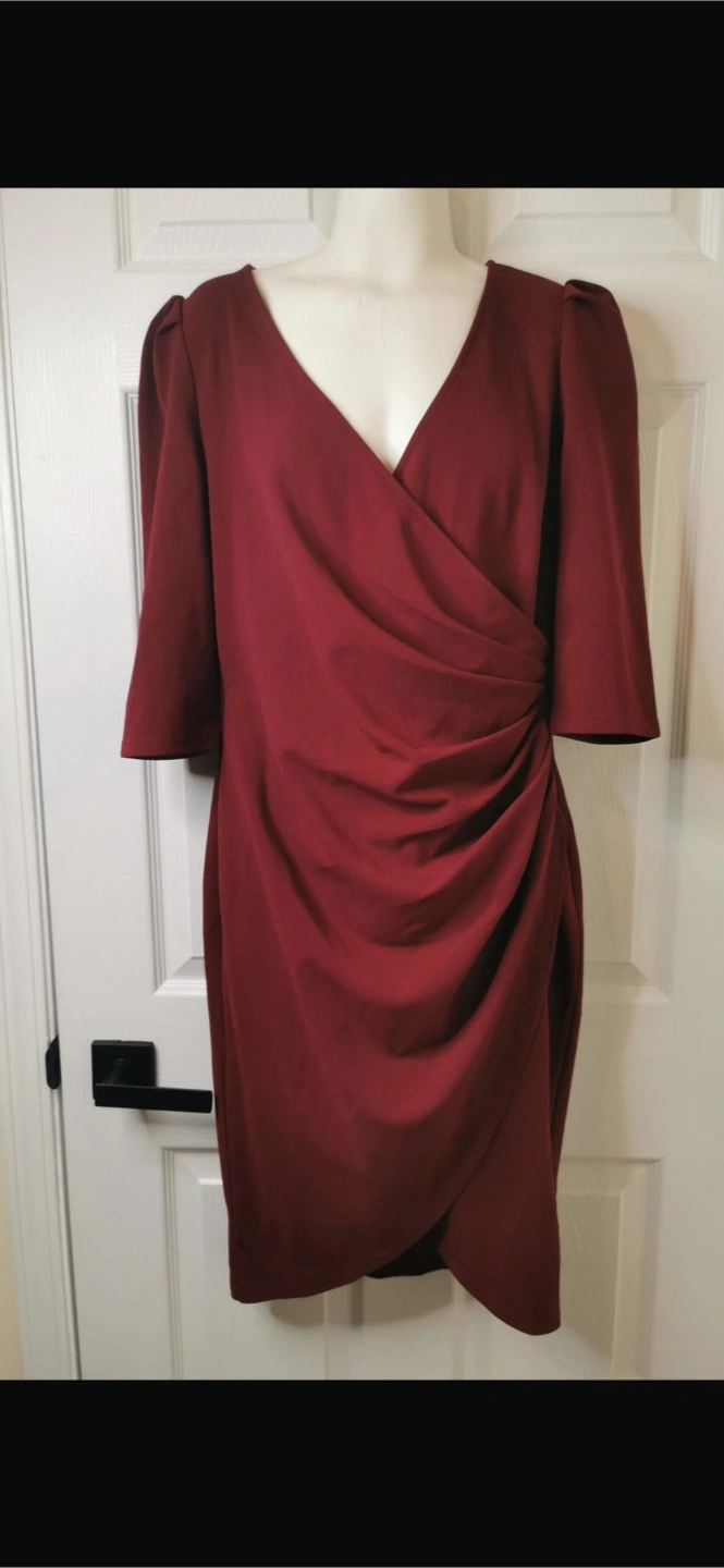 New! Retails for $63 Selling a lovely burgundy wrap dress! It's a size medium and features a flattering V-neckline and three-quarter sleeves. The dress has a stylish wrap design with ruching detail, perfect for a night out or a special occasion COMFORTABLE FABRIC: The women's dress is well made of high quality soft and stretchy fabric, comfortable to touch and wear, creats a classy and generous look for you. Get ready for all parties with this sophisticated bodycon wrap dress, flattering fitted on any body shape, you will gain many compliments. FLATTERING HIGHLIGHT: This wrap dress is that all will like. 3/4 Sleeve bodycon dress with deep v neck suits for any busts, especially big bust, makes you sexy but elegant. Front gathered ruched could hide your belly fat in gather layering which cleverly draws attention away from your belly fat and then flowing into a fashion tulip hem bodycon dress, perfectly hug your body and accentuate your curves, creating an ultra-slimming and attrative visual effect that everyone will be obsessed with. FASHIONABLE DESIGN: Dresses for women, sexy v neck, bodycon dresses, puff 3/4 sleeve dress, front gathered ruching detail, empire waist dresses, trendy tulip hem dress, that front cross mini length and back knee Length, dresses that hide belly fat, sheath dress, faux wrap dress, slit pencil dress, zipper on back, solid color, tight fitted dress, elegant dress. Classic wardrobe staple piece you can wear all year round, for endless chic looks.