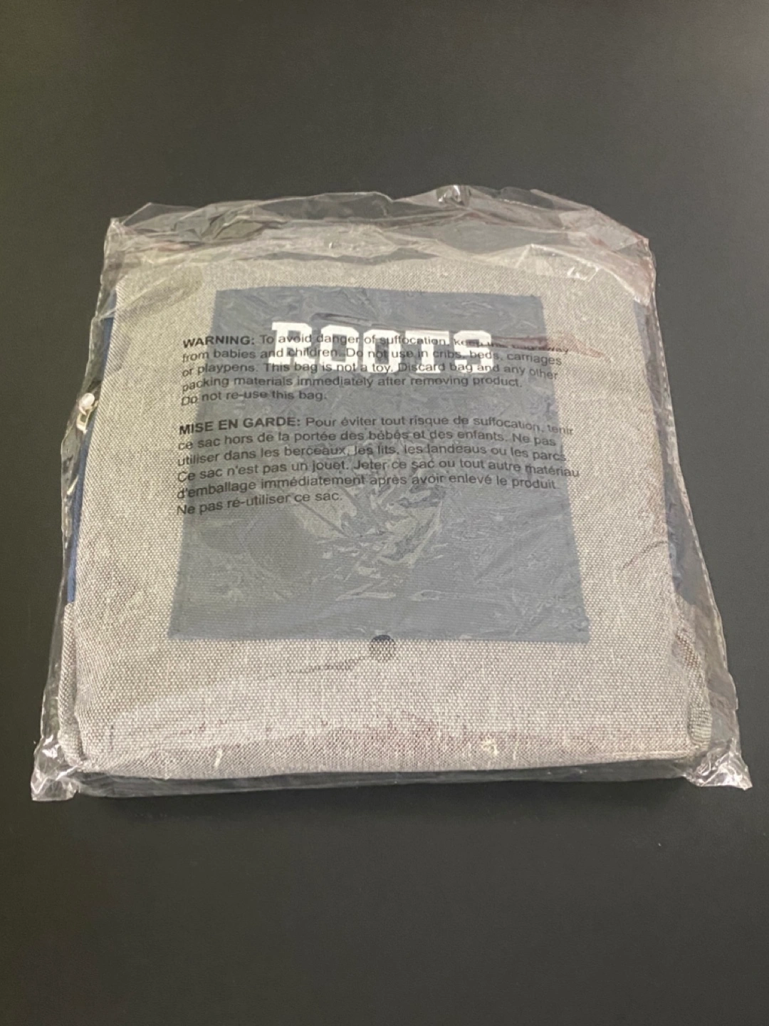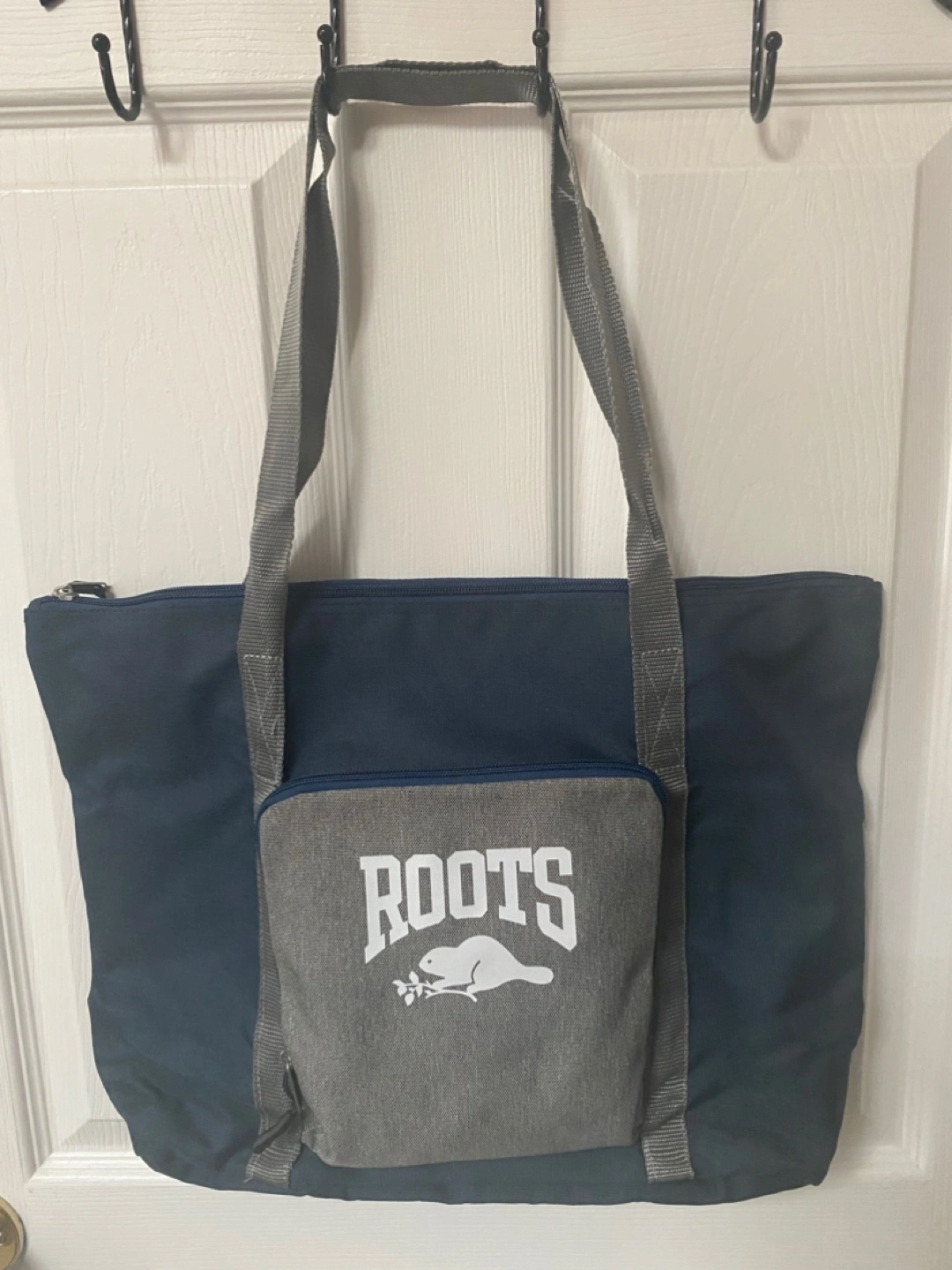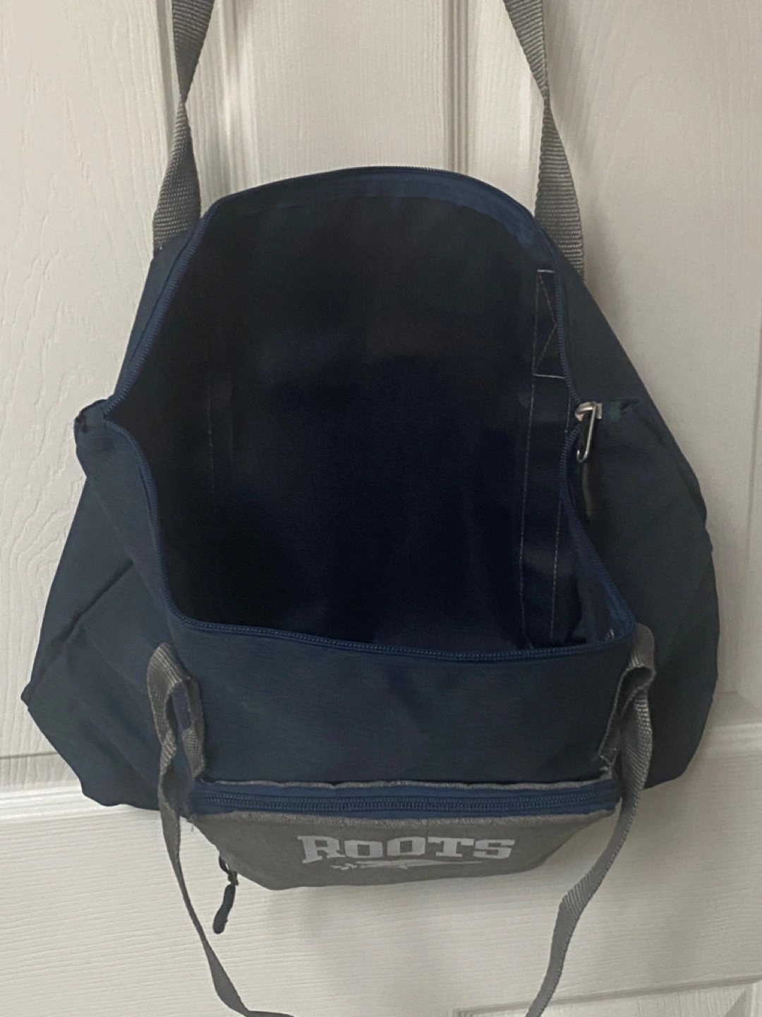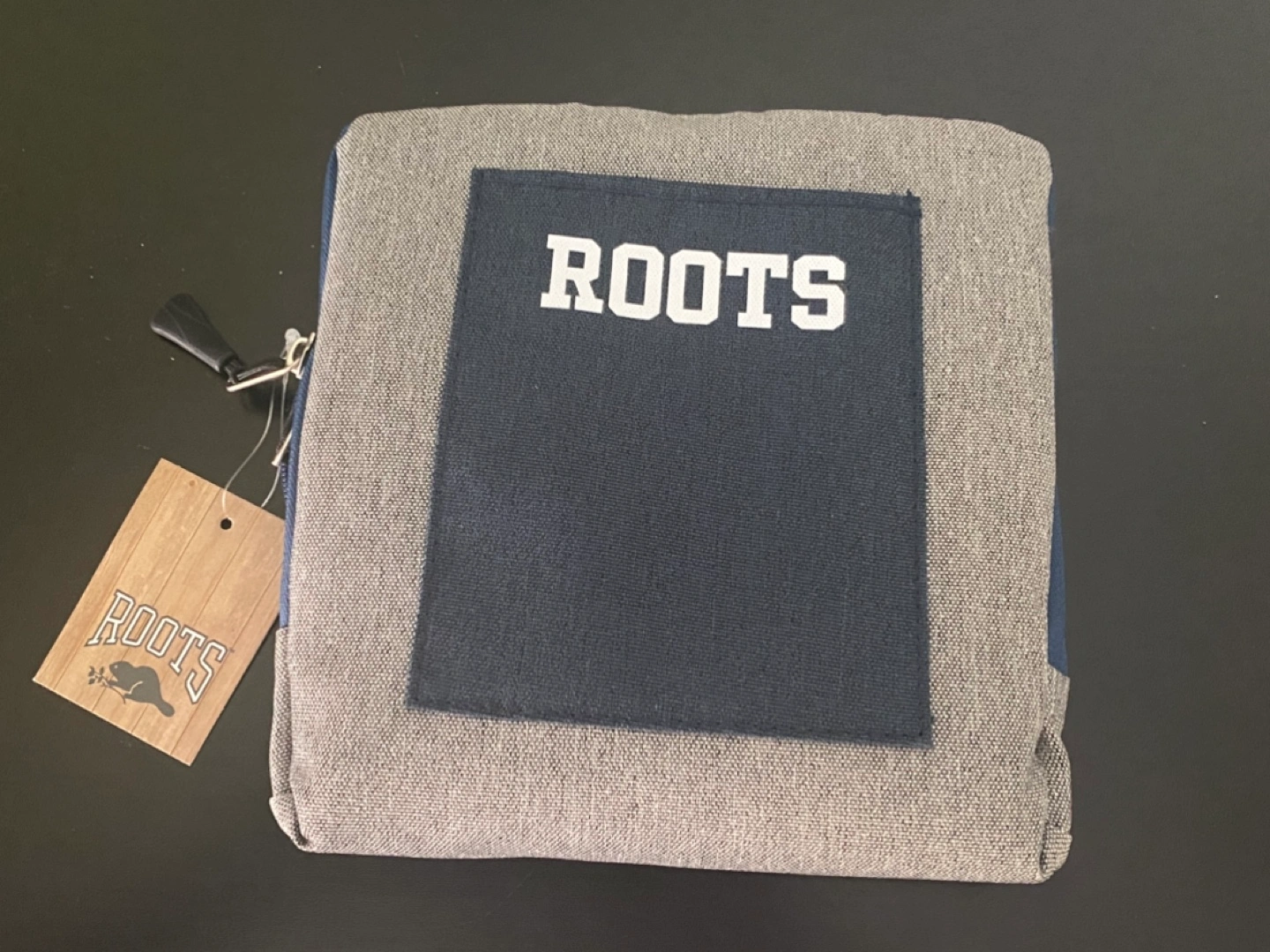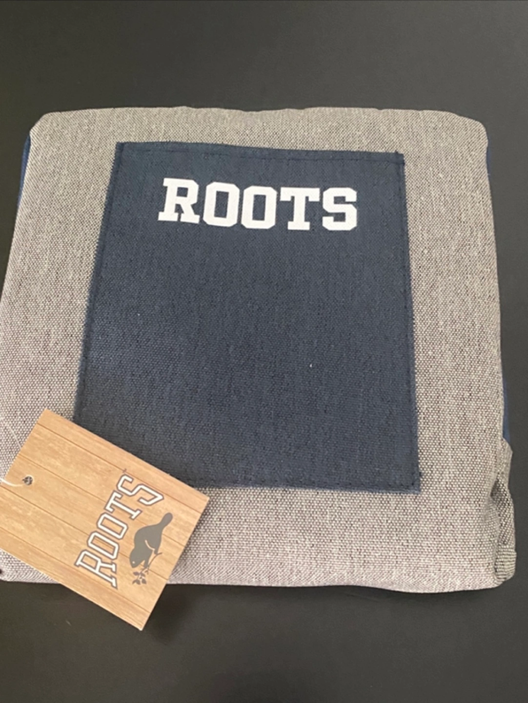 NEW!! Roots tote bag in great condition! It's a stylish and functional bag, perfect for everyday use. The bag features a navy blue and grey colour with a Roots logo on the front pocket. Measures 17” x 15” x 8.25” Packable and compressible canvas tote bag! New with tags and in plastic packaging. Cash and pick up only, Cawthra and Lakeshore area in Mississauga.