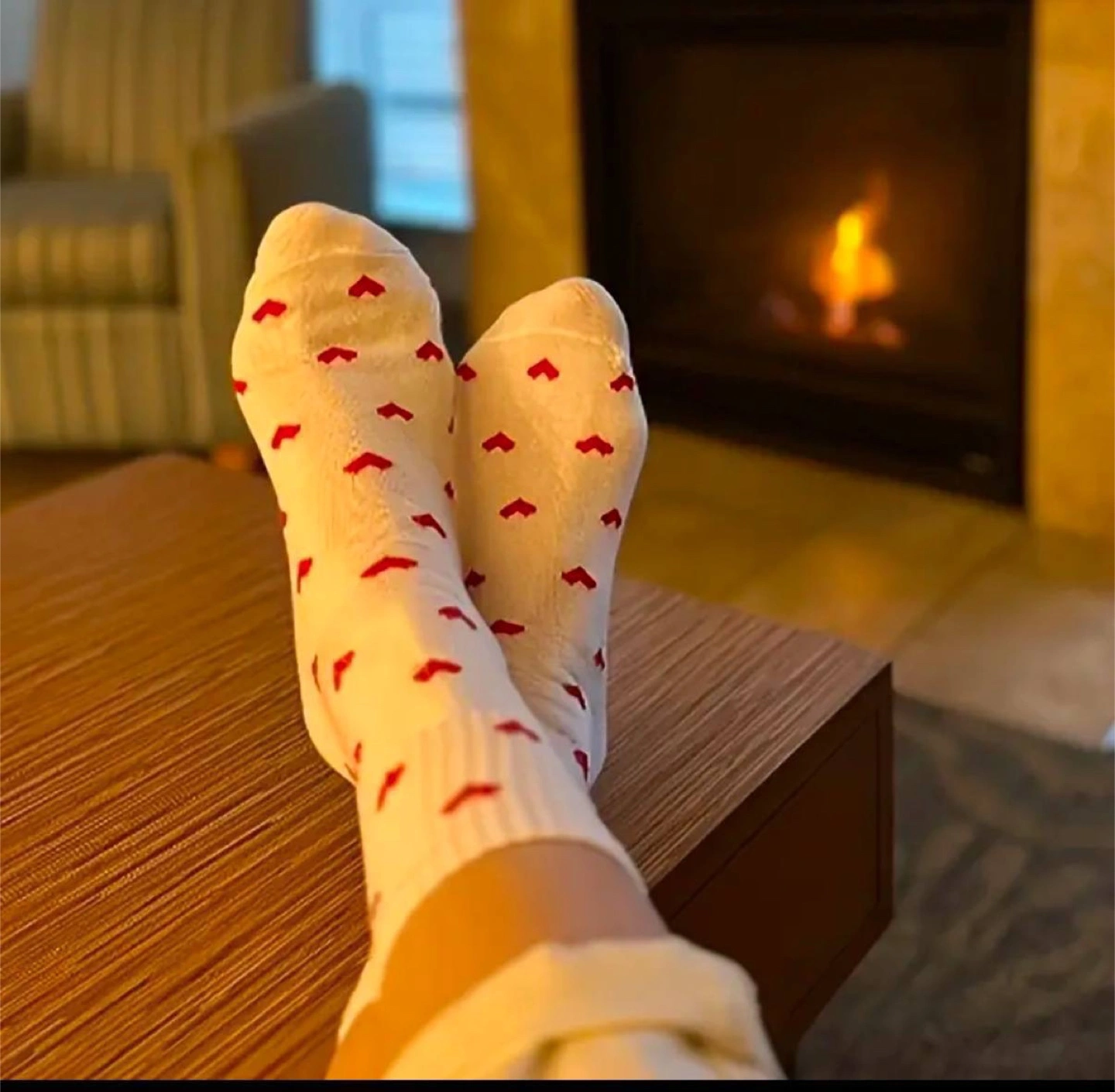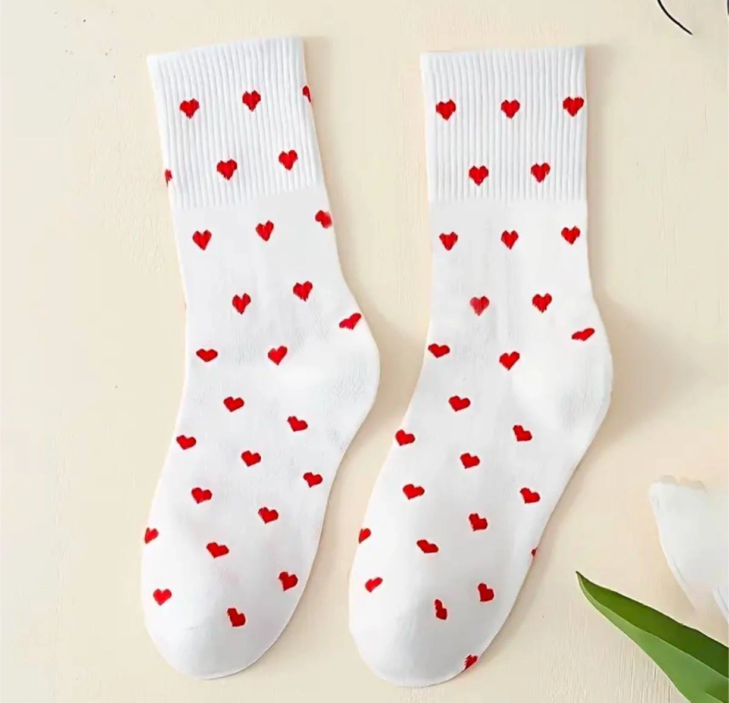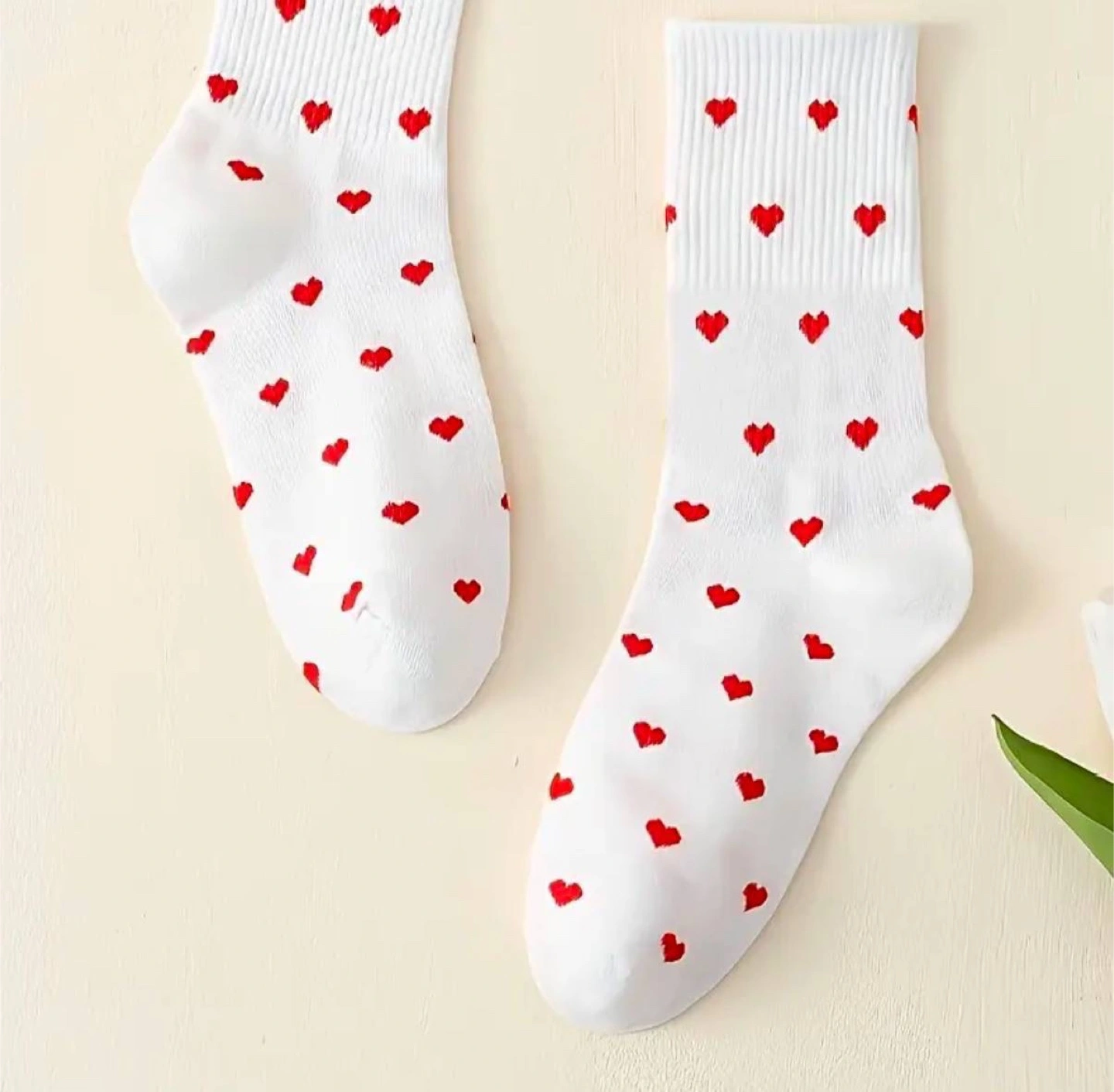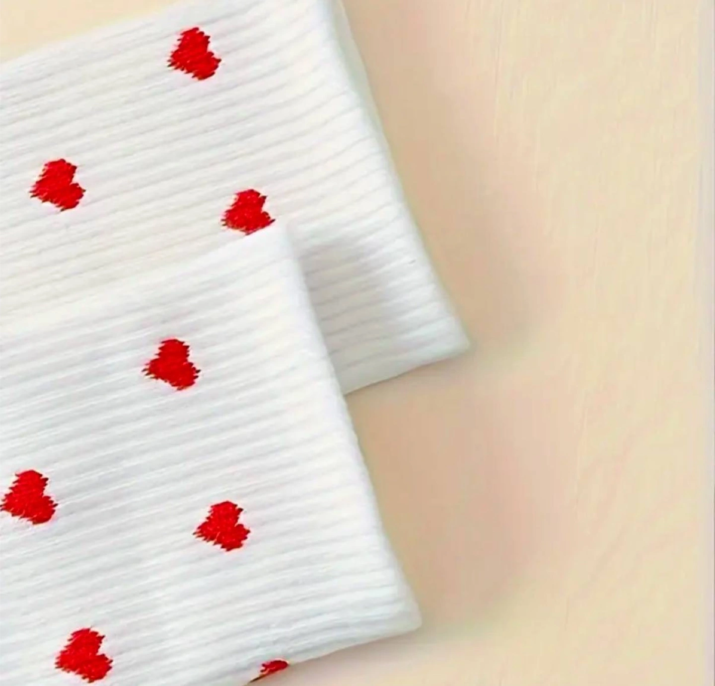 🎁Free Please dm regarding pick up location, day and time ✅Description: New item with no issues Pair of white crew socks. Red heart pattern. Cozy and comfortable.