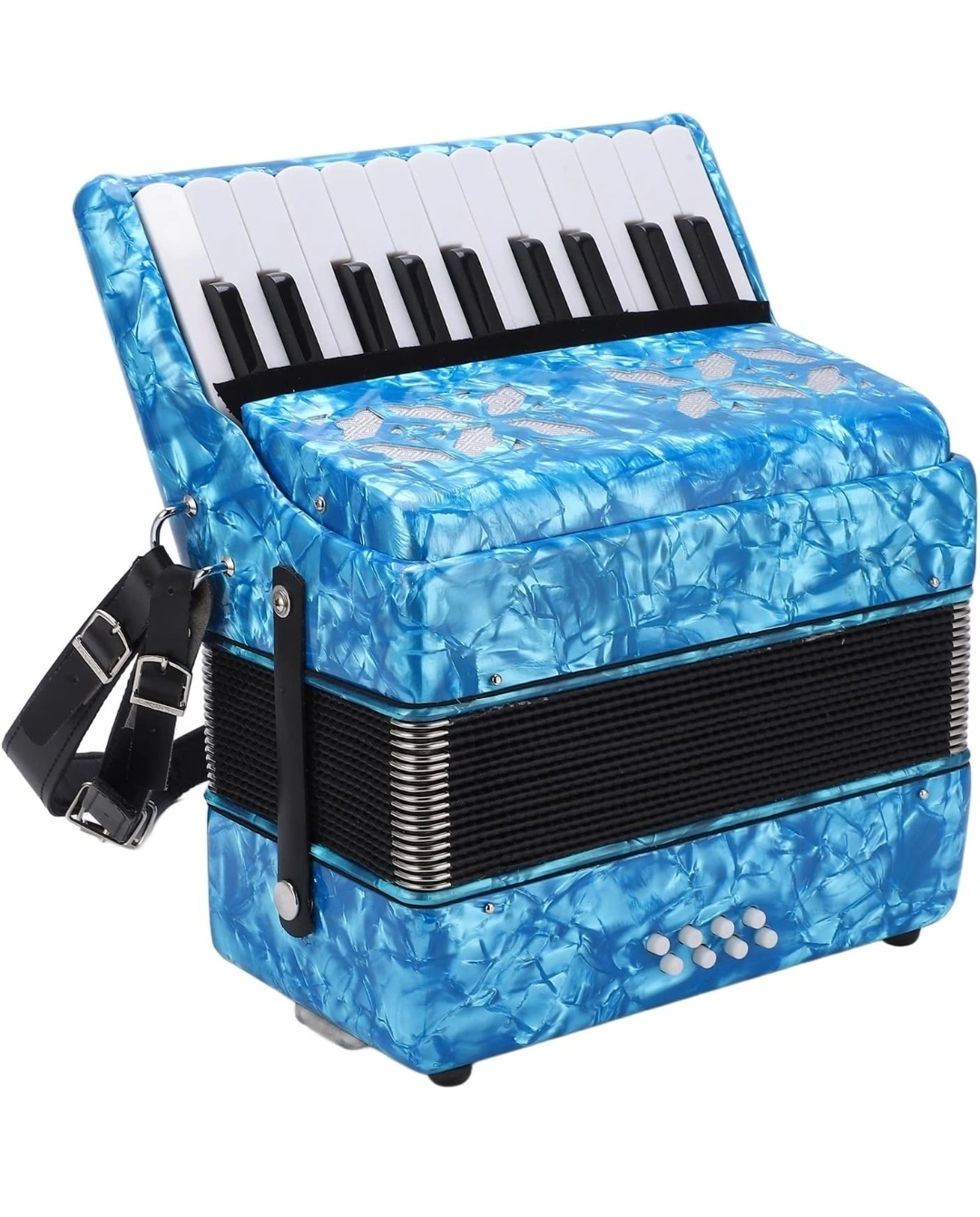 This gorgeous 22-Key, 8-Bass Piano Accordion combines elegant design with rich sound and responsive playability - Pro Sound 🎶 °•○•°•○•°•○•°•○•°•○•°•○•°•○•°○•°•○°•○°•○ 🌟 Price: $350 📦 Condition: New in open box – Accordion is unused and beautiful! 📍 Pick-Up: Scarborough Golf Club Rd & Lawrence Ave E 🚚 Fast Delivery: Local drop-off or Canada Post/UPS shipping available 🔎 Don’t Miss Out! Explore my other listings for more musical instruments & gear 🎼 Thanks for stopping by! °•○•°•○•°•○•°•○•°•○•°•○•°•○•°○•°•○°•○°•○ 🎶 Product Overview Perfect for beginners, students, and casual performers, this model is lightweight, well-balanced, and designed with adjustable shoulder straps for comfort during long sessions. With a bright pearlescent celluloid finish, this accordion doesn’t just play beautifully—it looks the part too. 🎵 🛠️ Key Specs & Features: ✅ Keys: 22 Treble Keys ✅ Bass: 8 Bass Buttons ✅ Material: ABS body, maple wood frame, soft sheepskin bellows ✅ Finish: Bright Blue Celluloid with floral inlay ✅ Dimensions: Height: 31 cm (12.2") Width: 29.5 cm (11.6") Depth: 14 cm (5.5") ✅ Included: Adjustable shoulder straps ✅ Missing: One glove (optional accessory) 🎵 Sound & Performance 🎼 Responsive bass buttons with clean tonal feedback 🎶 Multi-speed treble control lets you shift playing styles with ease 🪗 Imported reeds provide a strong low-end and clear highs 🧵 Hand-sewn sheepskin bellows for lasting flexibility and air control 🪑 Ergonomic key spacing for smoother finger transitions 🎤 Excellent for pop, folk, classical, and world music genres 🎁 Perfect gift idea for students, hobbyists, or collectors looking for a high-quality and eye-catching beginner/intermediate accordion.