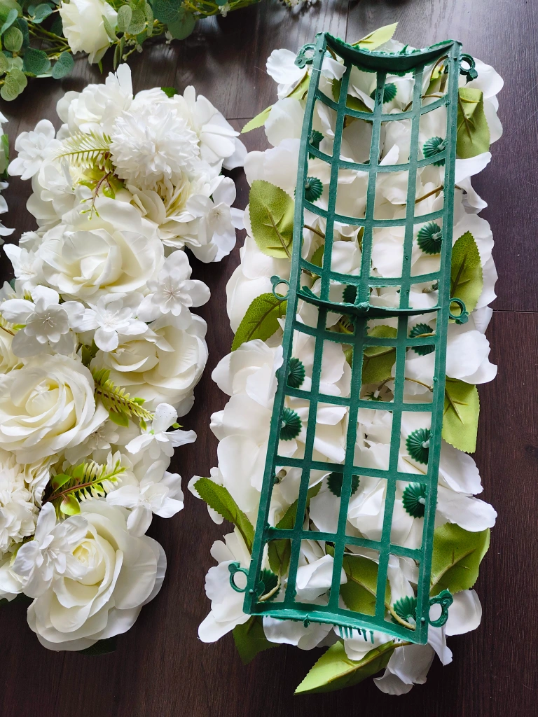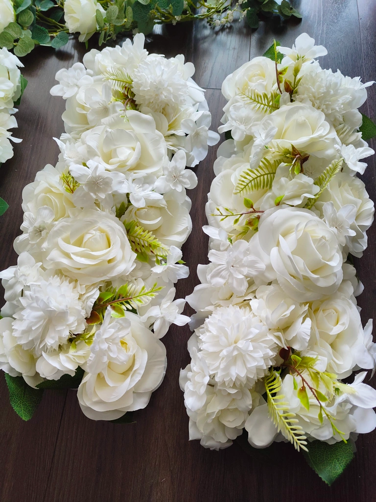 Selling 2 beautiful fhead table florals, perfect for a wedding or special event! They feature lovely white flowers and greenery. They're in great condition and ready to add a touch of elegance to your occasion ☺️ the size of each one is 50 x 20 cm. Only $20 each! :)