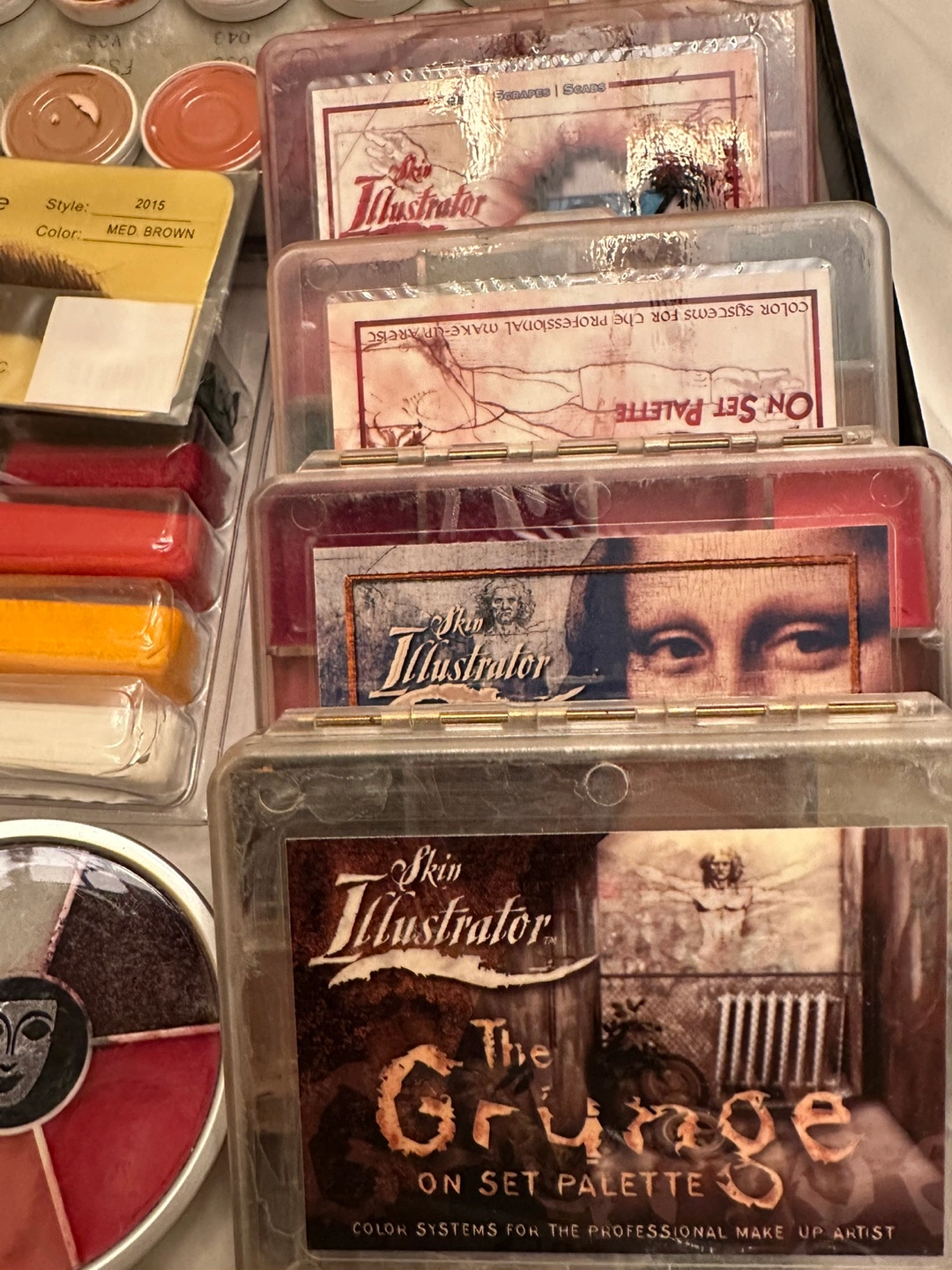 Selling a collection of professional stage and screen makeup effects! Includes Skin Illustrator palettes like The Grunge On Set Palette, Rubie's Costume Co. moustache, and more. Perfect for special effects artists or costume enthusiasts