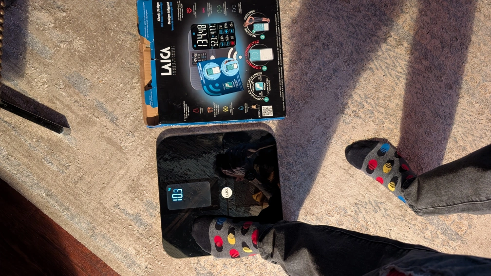 Selling a Laica PS7025 digital body composition scale! It measures weight, body fat, body water, muscle mass, and bone mass, +10 other readings. It has a sleek ITO glass design and a vibrant display. It connects via Bluetooth to the Fitdays app. Max weight capacity is 400 lb. Comes with the original box and 4 triple A batteries.