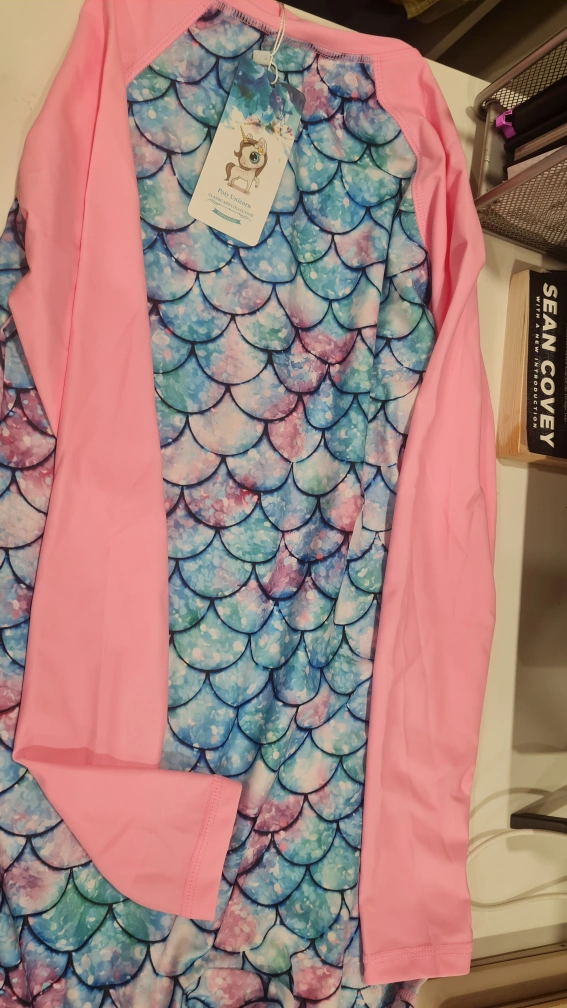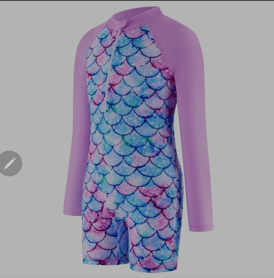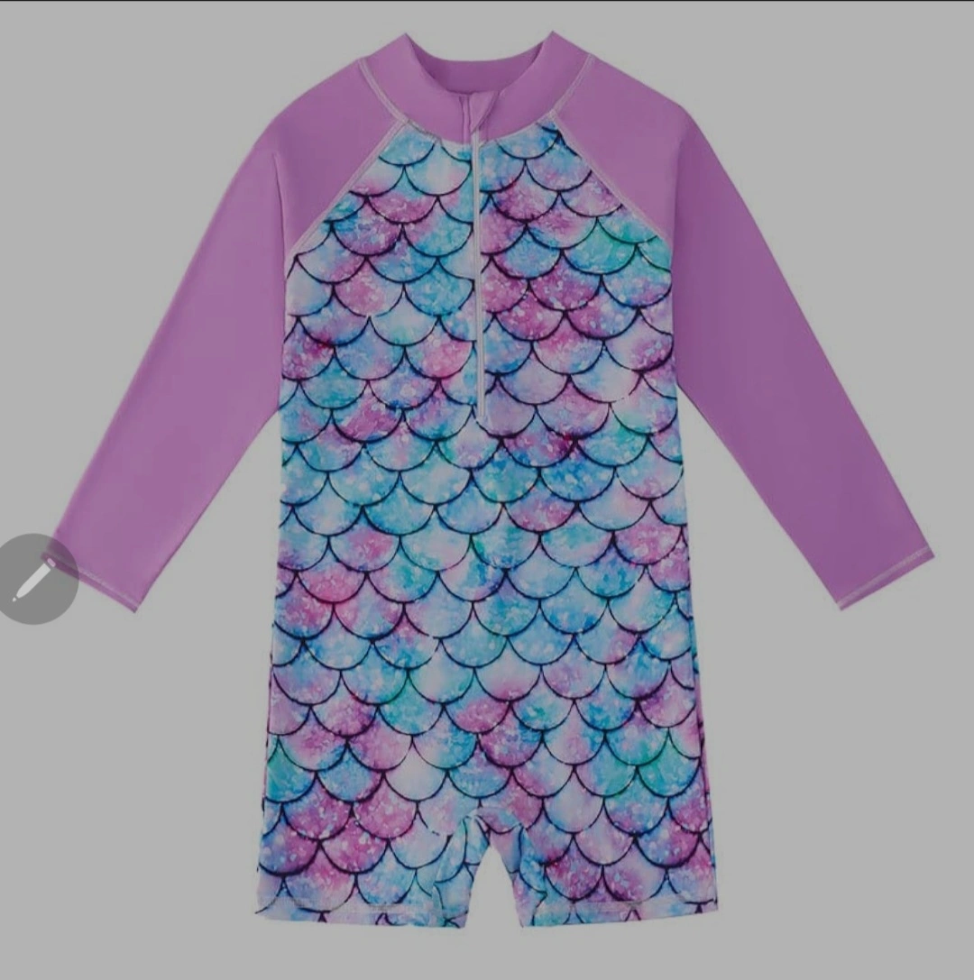 Cute mermaid scale swimsuit for kids! It features a colourful scale design with long sleeves. Perfect for swimming lessons or fun at the beach size: 5 - 8 years (150)
