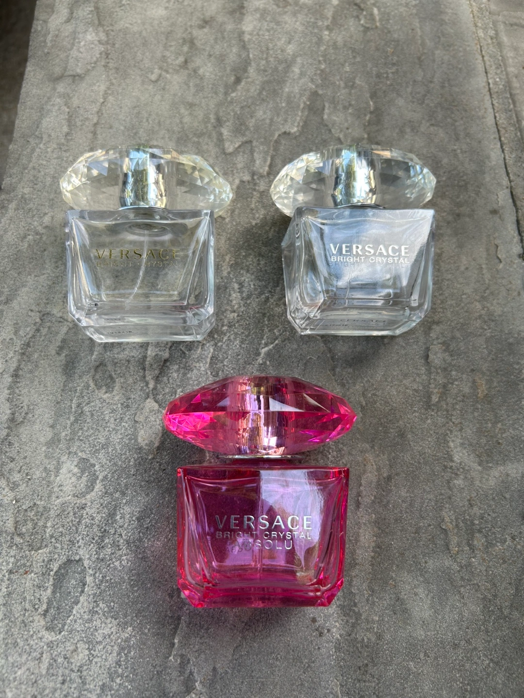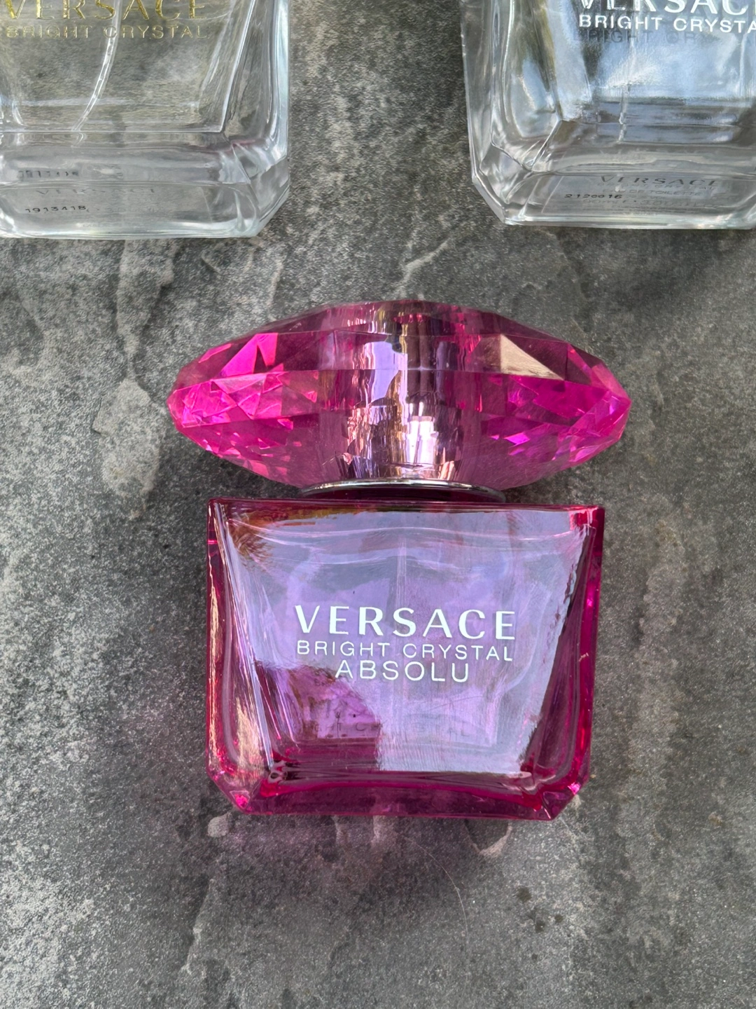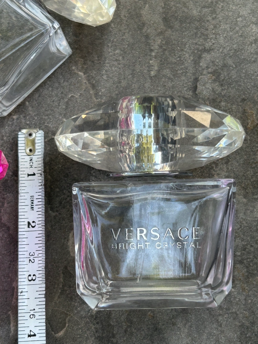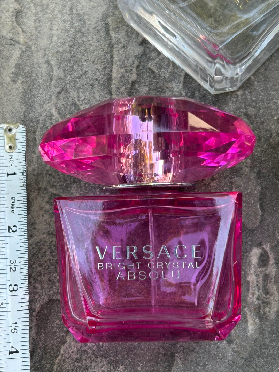 $2 Pink crystal Versace Absolu eau de parfum eau de perfume EMPTY BOTTLE ONLY 90 ml big size display This is an authentic Versace Absolu perfume Large size 90 ml Beautiful display item The pink and pink crystal top really pop Only a few drops perfume left so for display only 2.00 I also have 2 empty bottles of the white bright Crystal eau de toilette Again pretty much empty so more for display These are $2.00 each Flexible re pickup Elmsdale Road M4J 3M3 Donlands O'Connor East York Don Mills south exit off