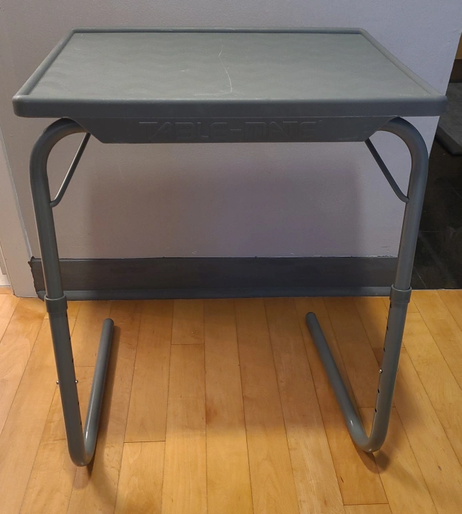 Selling a Table Mate II adjustable folding table. It's in good condition and perfect for small spaces. Table can be adjusted to preferred height and can be easily folded to be put away. Table comes with built in cup holder. Only available for pick-up in North York.