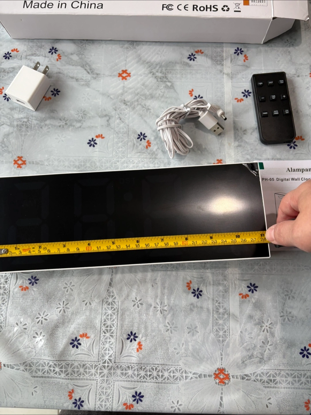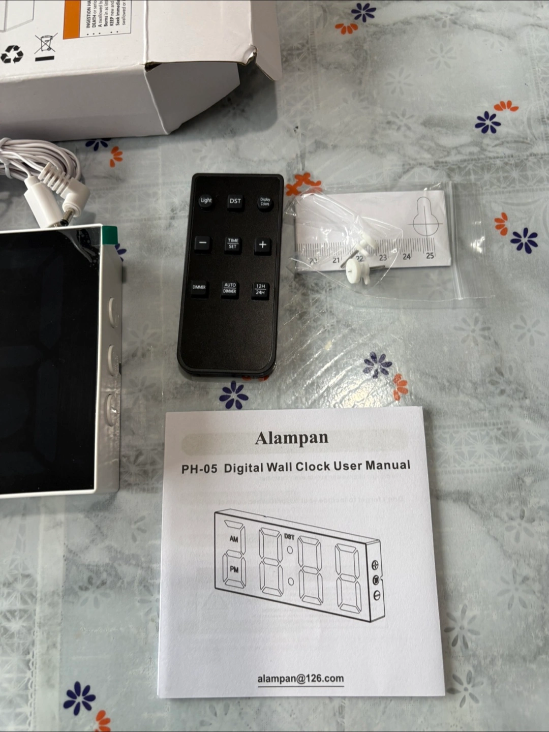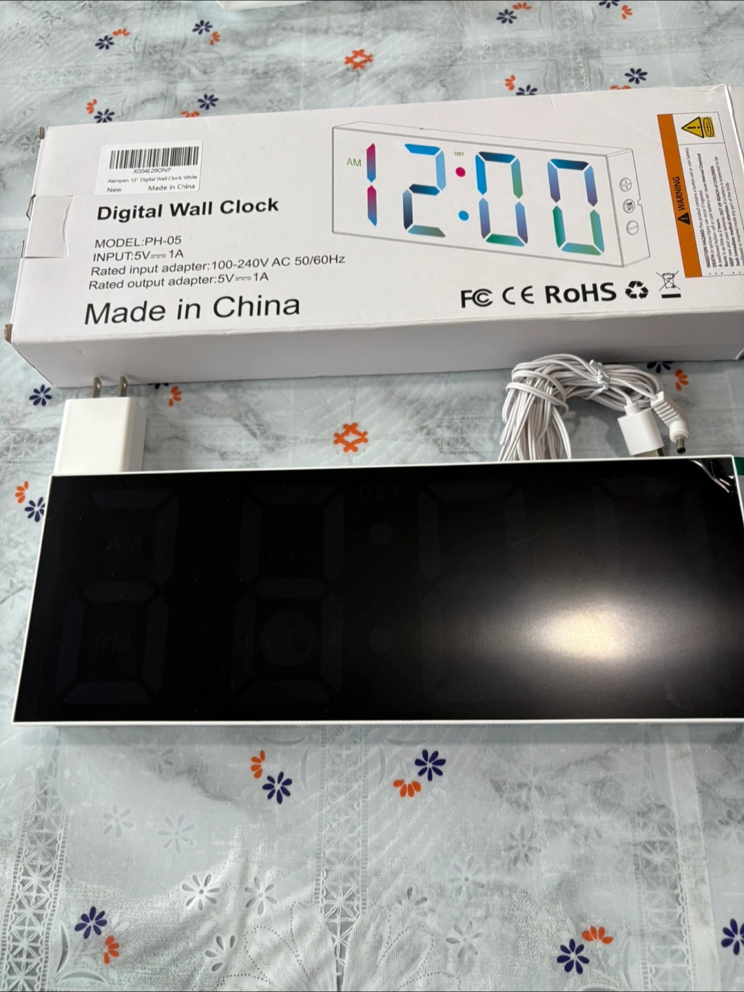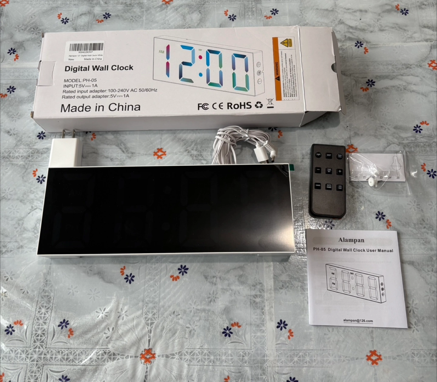 π Description: Brand new, never used large-screen digital wall clock. β Model: PH-05 β Width: Approx. 29 cm (12 inches) β Power: 5V β 1A (USB adapter included) β Package Includes: β’ Digital clock β’ Remote control β’ Wall mounting kit β’ USB power cable and adapter β Features: β’ Colorful LED digits β’ 12H / 24H time format β’ Auto and manual brightness control β’ Time set, daylight saving time (DST), and light adjustment functions β’ Ideal for home, office, classroom, or as a gift Firm price, no negotiation.