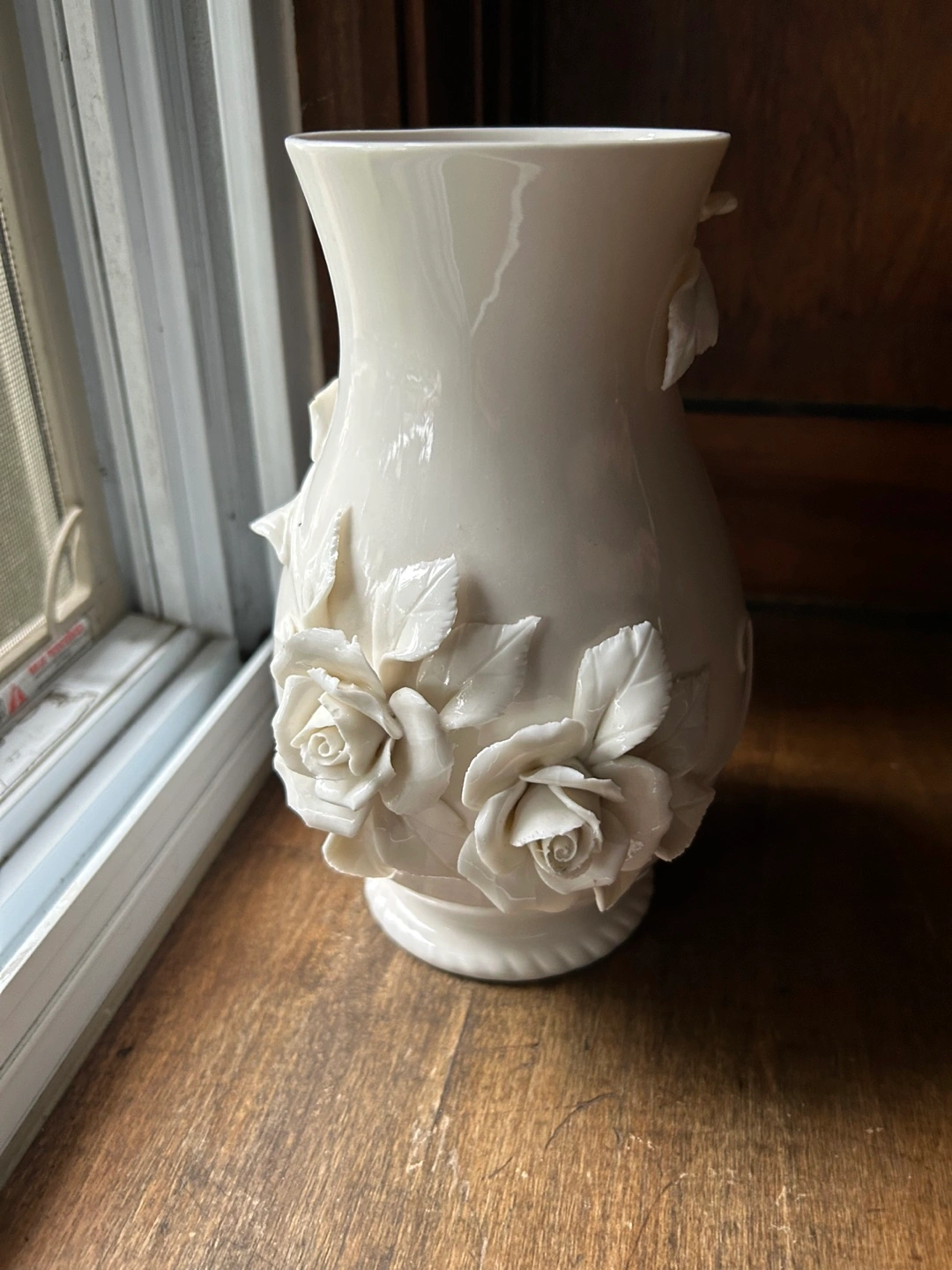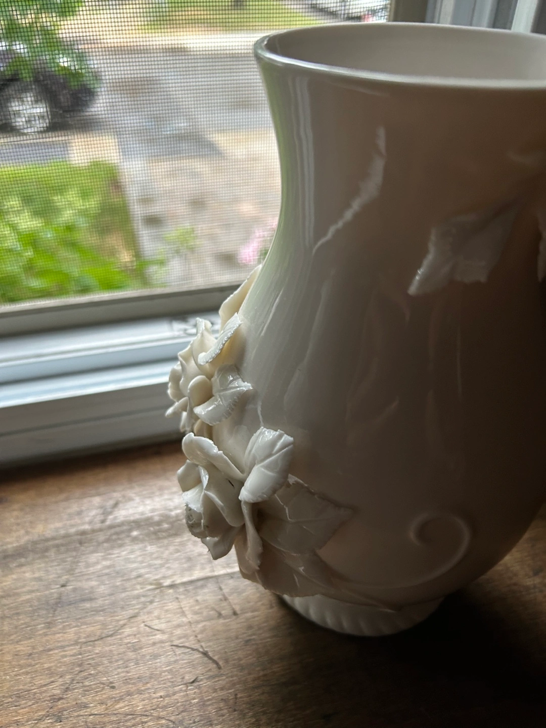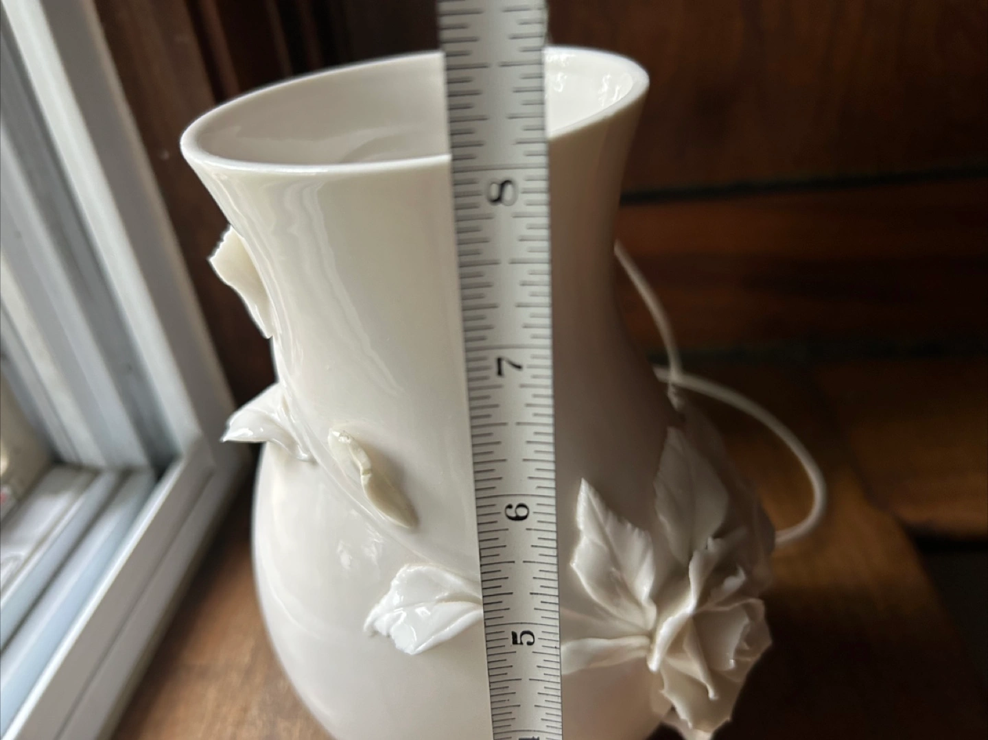 Beautiful delicate all white vase With amazing detail roses flowers and vines in high relief Looks to be in good condition I'm not sure if many of the roses are missing bits but nothing obvious 8 inches tall $4.50 See my other vases and pots and containers Flexible re pickup Elmsdale Road M4J 3M3 Donlands O'Connor East York Don Mills south exit off DVP