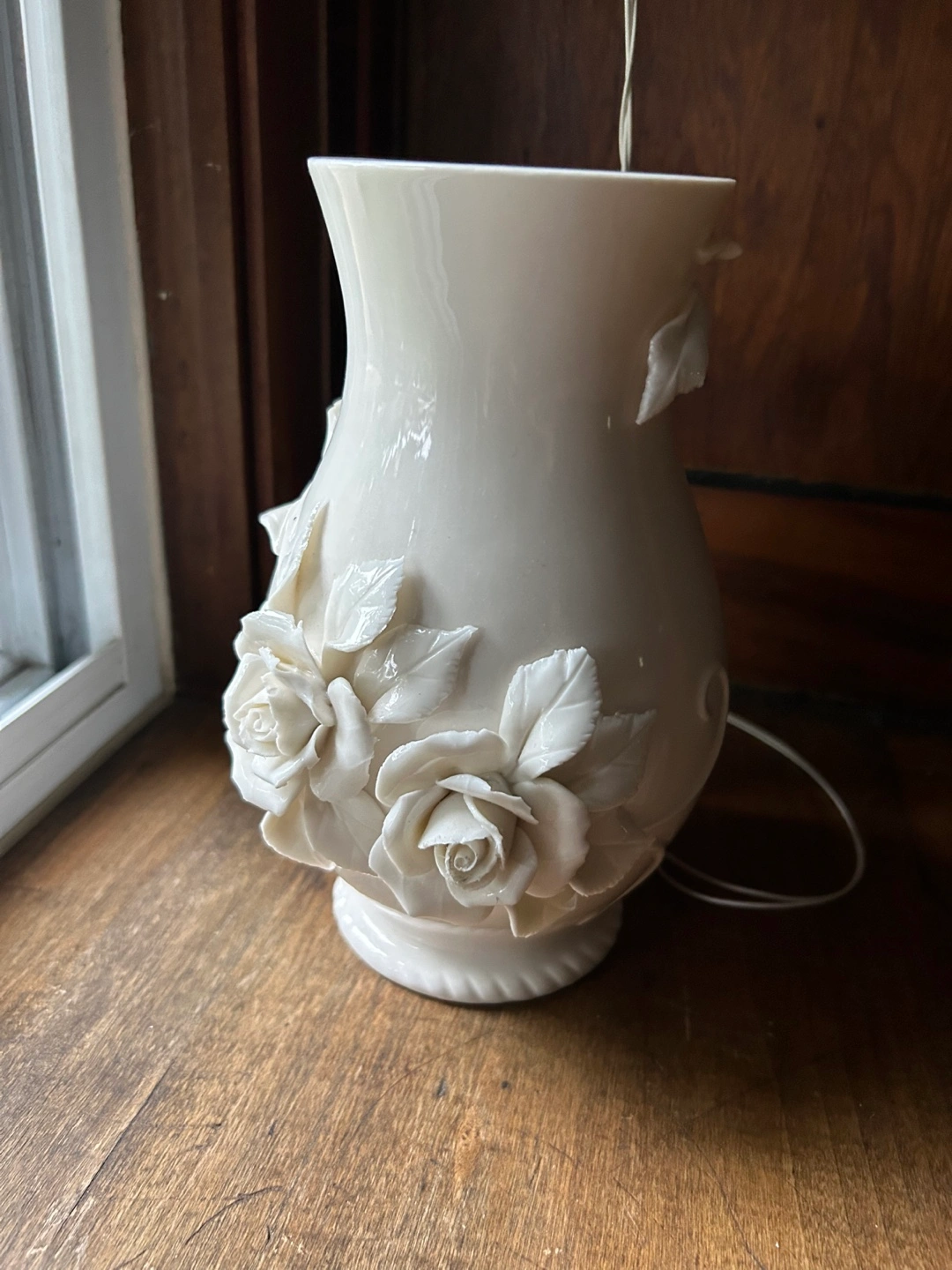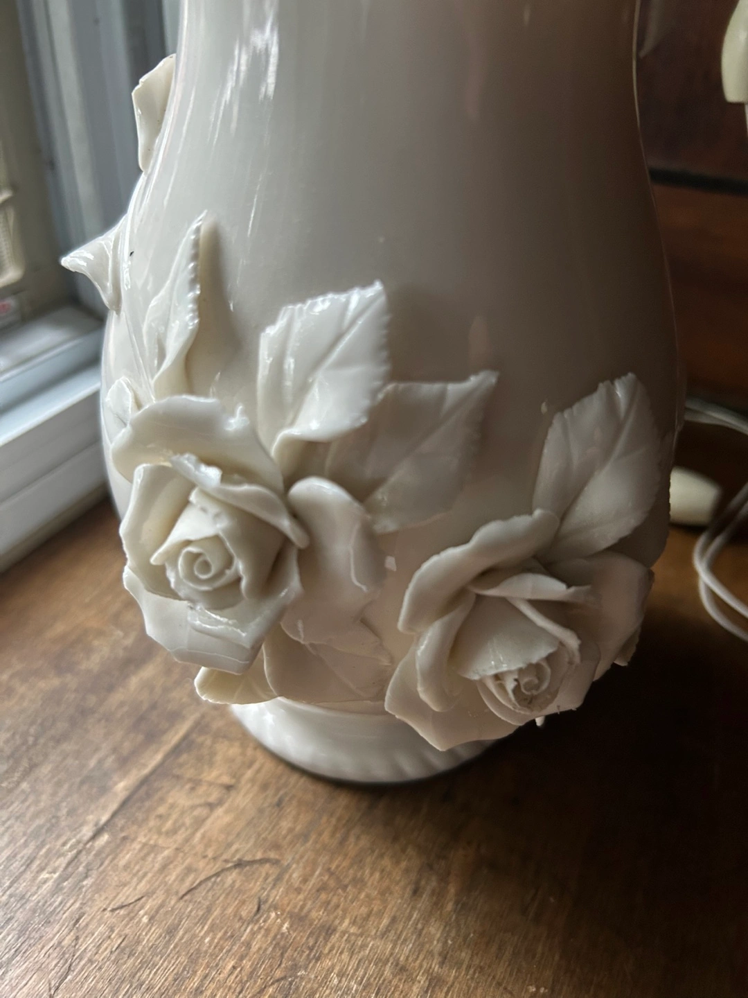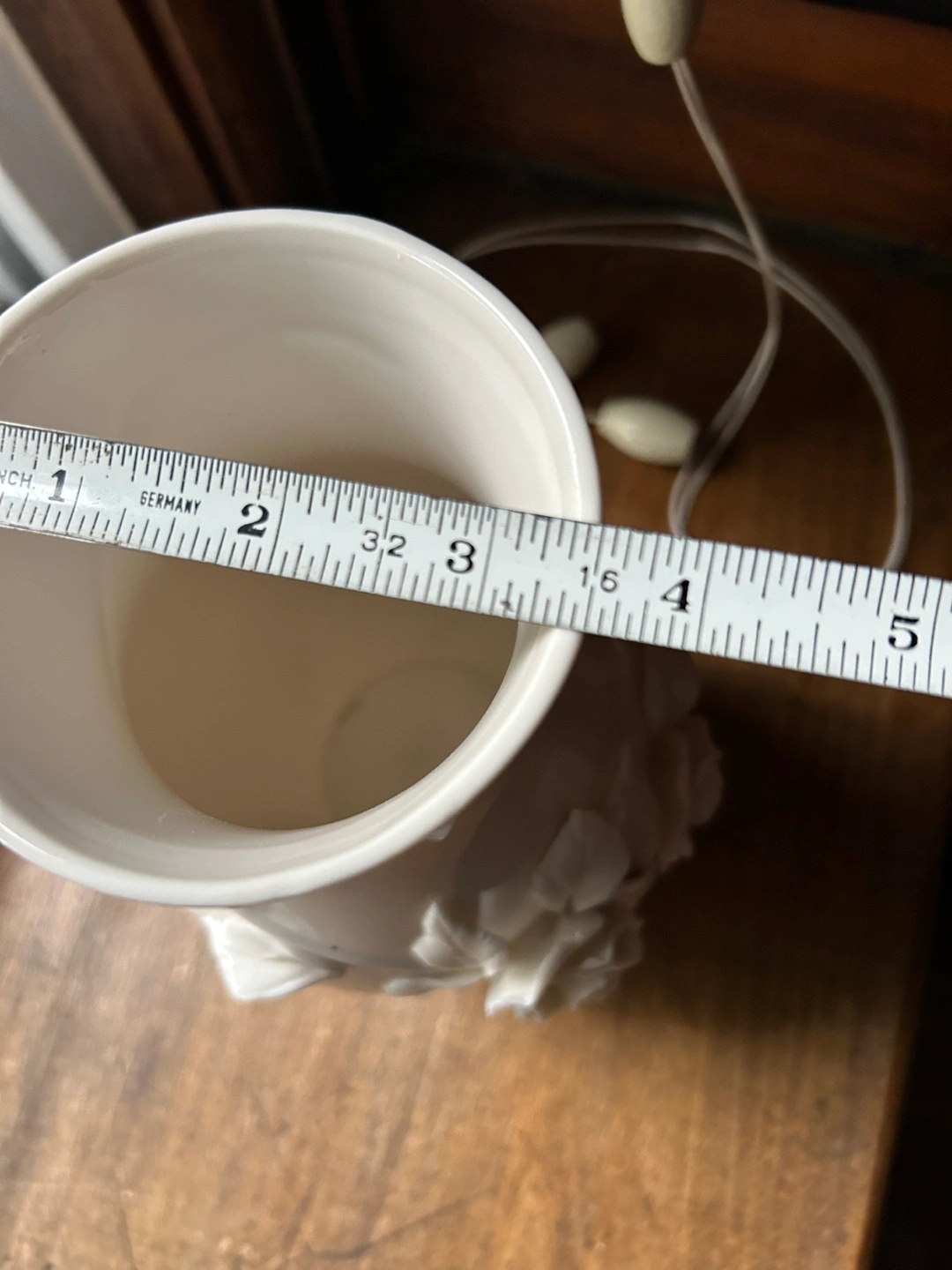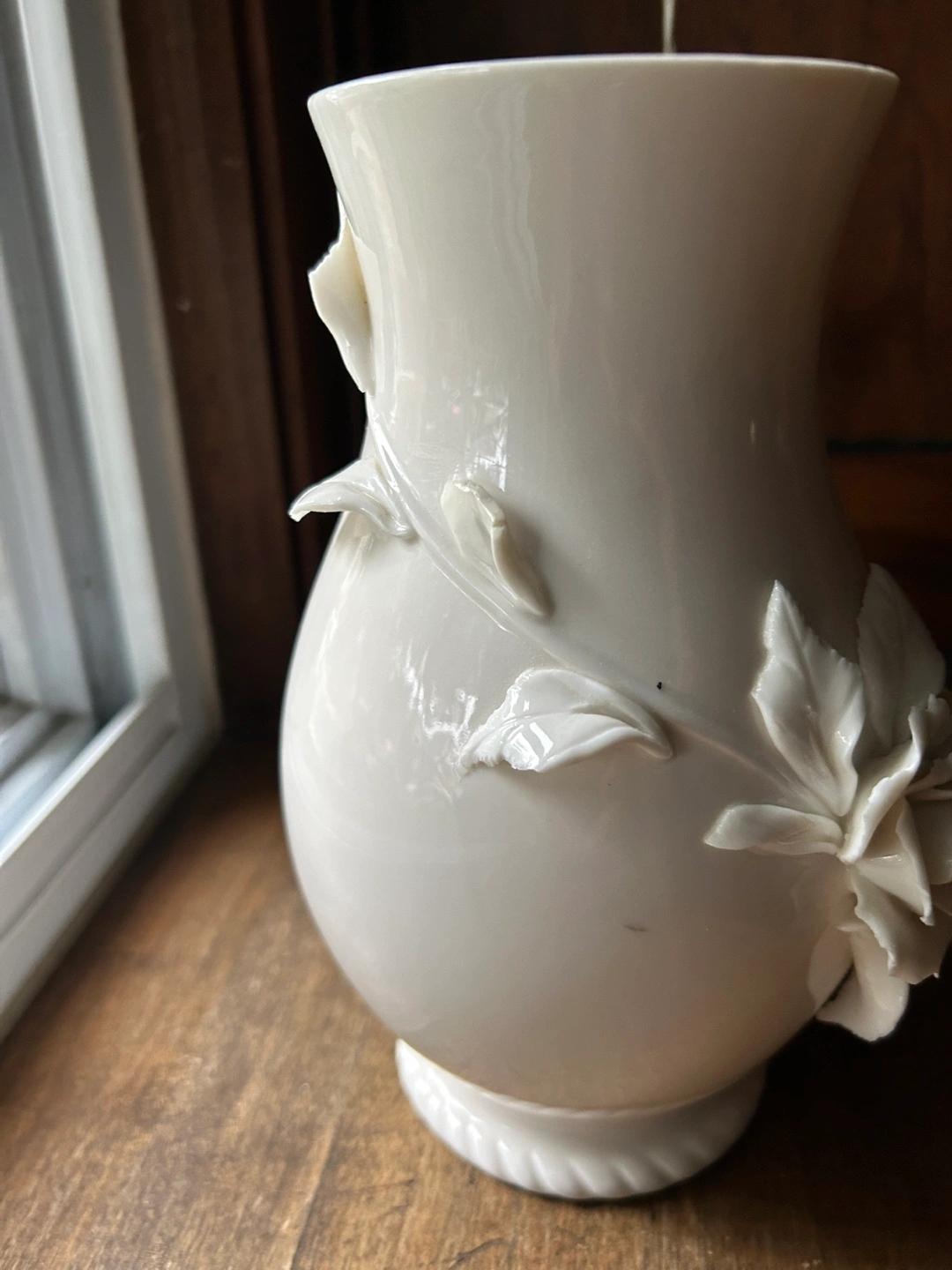 Beautiful delicate all white vase With amazing detail roses flowers and vines in high relief Looks to be in good condition I'm not sure if many of the roses are missing bits but nothing obvious 8 inches tall $4.50 See my other vases and pots and containers Flexible re pickup Elmsdale Road M4J 3M3 Donlands O'Connor East York Don Mills south exit off DVP