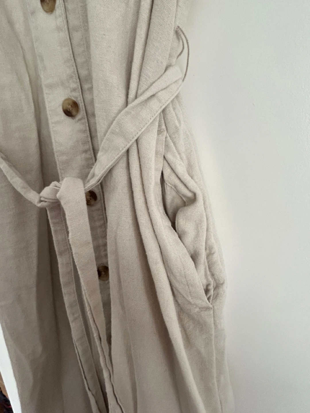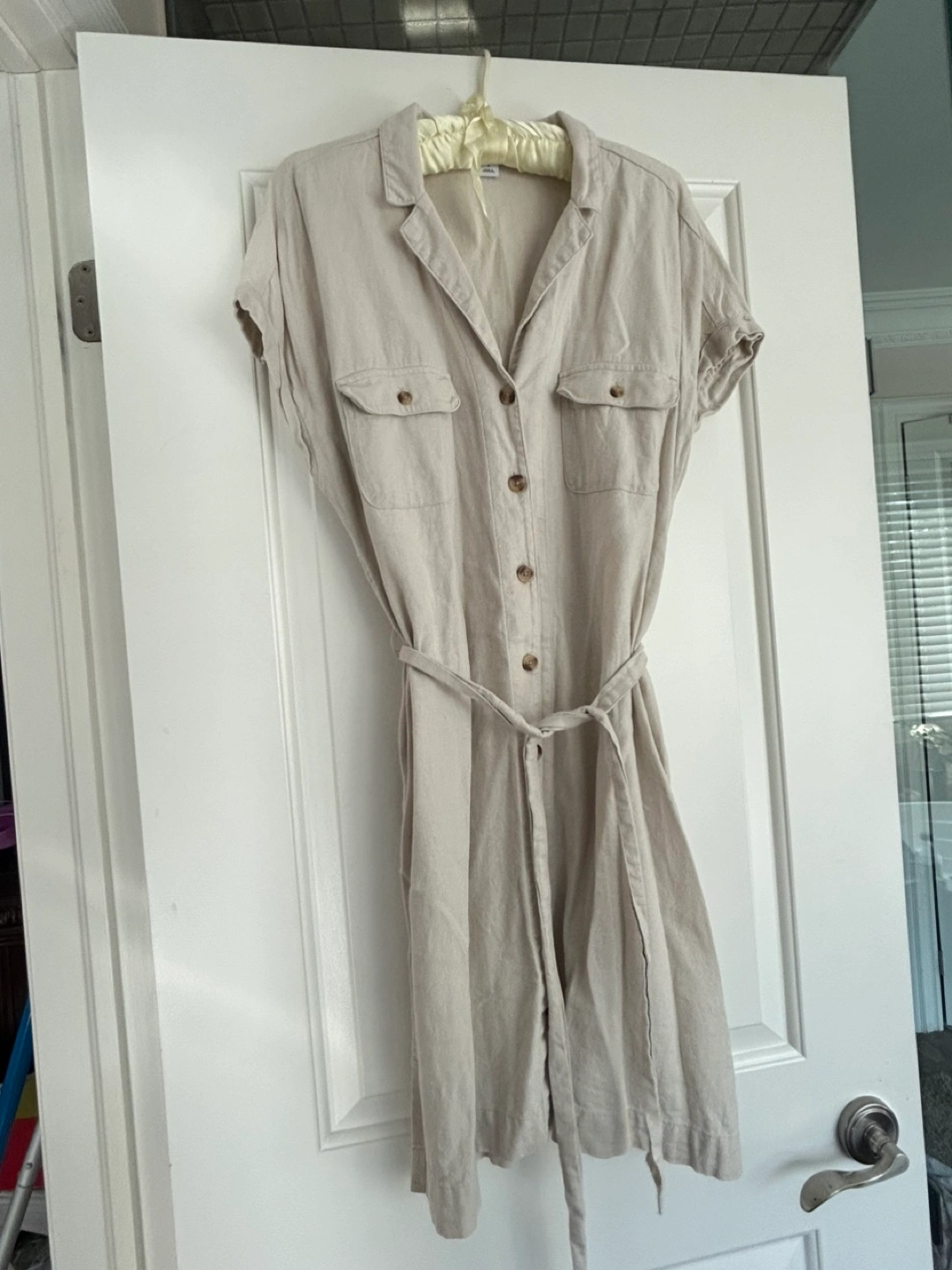 Selling a super comfy Old Navy linen blend utility dress! It's a size large and features a flattering belted waist and functional pockets. Perfect for a casual day out or dressed up with some cute accessories. The material is lightweight, breathable linen, making it ideal for warmer weather