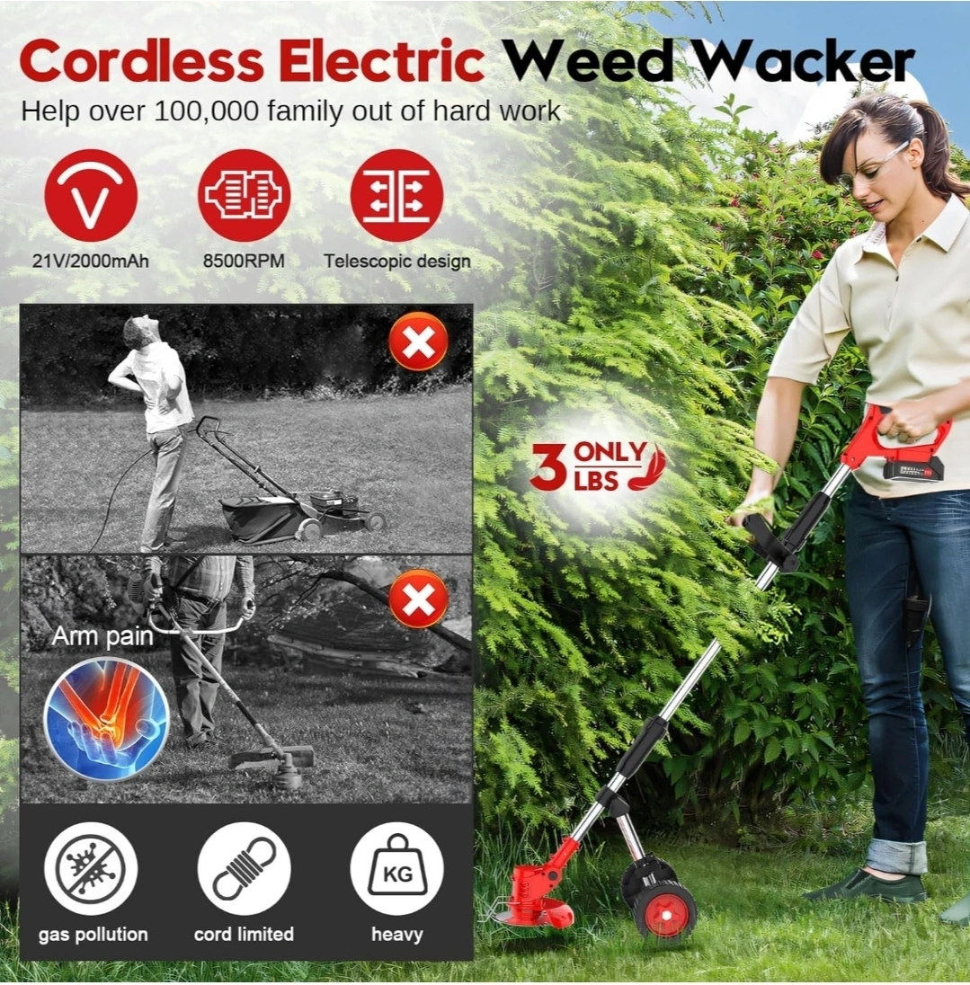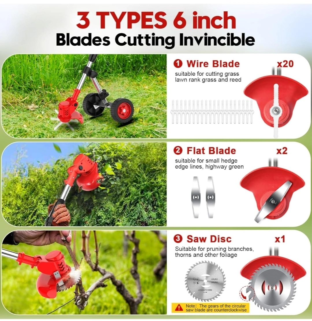 Tackle your lawn like a pro with the Lemolifys 4-in-1 Cordless Weed Wacker & Trimmer Combo — a high-powered, ultra-lightweight, no-string electric solution designed for maximum performance and minimal effort. °•○•°•○•°•○•°•○•°•○•°•○•°•○•°○•°•○°•○°•○ 🌟 Price: $100 📦 Condition: New in open box ( signs of minor use) Tested & Working* 📍 Pick-Up: Scarborough Golf Club Rd & Lawrence Ave E 🚚 Delivery/Shipping: Available locally or via Canada Post 🔎 See my other listings for more great tools & gadgets! °•○•°•○•°•○•°•○•°•○•°•○•°•○•°○•°•○°•○°•○ ✅ Product Highlights: 🔋 Battery Powered Freedom – No messy gas or tangled cords. Includes 2 x 21V Lithium Batteries + Charger. Up to 60 min runtime. 🛠 4-in-1 Functionality – Works as a: Stringless Weed Trimmer Mini Lawn Mower Brush Cutter (metal blades included) Edger w/ adjustable wheel ⚙️ 3 Blade Types Included: 6” Saw Blade – Thick bushes & shrubs Metal Blades – Older weeds & reeds Plastic Blades – Gentle lawn trimming 🌀 Adjustable Cutting Head – 90° rotation with telescoping shaft (100–130cm). Great for slopes & hard-to-reach spots. 🧤 Ergonomic & Lightweight – Weighs just 1.36 kg! Easy to carry and arthritis-friendly. 🛡 Safety First – Built-in lock button + plant guard ring + safety glasses & gloves included. 📦 What’s Included: 1x 4-in-1 Weed Trimmer (Red) 2x 21V Batteries 1x Charger 6" Saw Blade, Side Cutting Blade, 2x Metal Blades, 20x Plastic Blades Adjustable Wheel, 2x Wrenches, Gloves, Safety Glasses Manual 🎯 Perfect For: Homeowners, DIYers, Seniors, Women Trimming around flower beds, walkways, fence lines, shrubs Quick yard cleanups without the noise or fumes