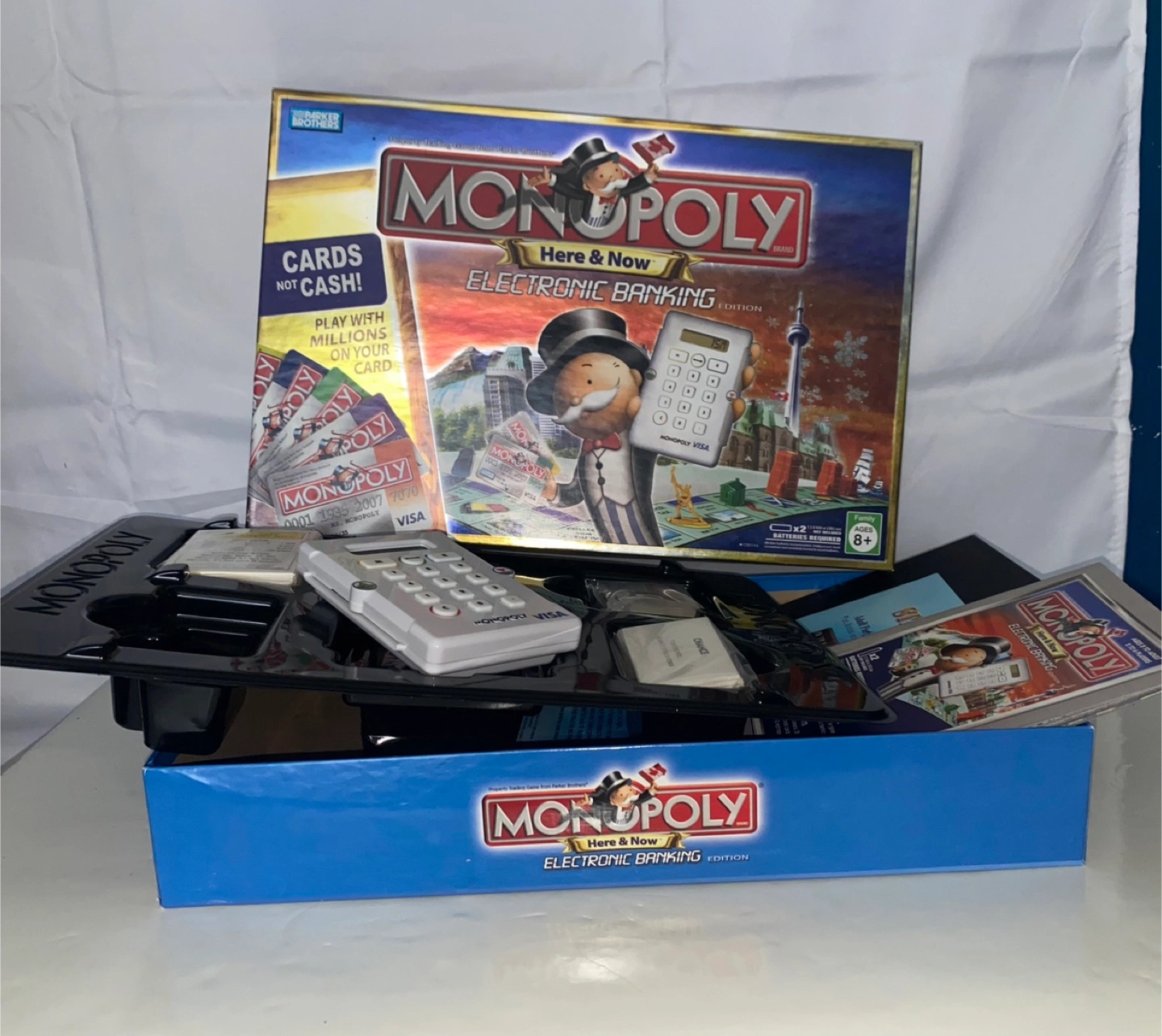 Monopoly 2006 Here and Now Canadian Edition Electronic Banking 100% Complete * Published in 2006 by Hasbro / Parker Brothers Canada * Ages 8 and Up * 2 to 6 Players * English Text and Instructions The Game is 100% Complete and in Excellent plus Condition. $30.00 Pickup Whitby Brock St N and Maple