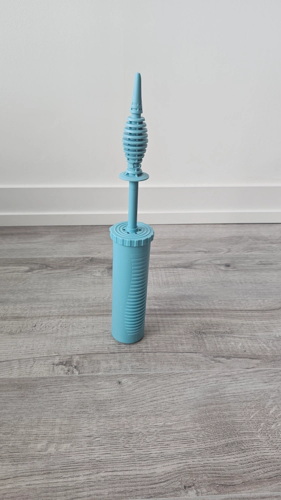 Here's a blue balloon hand pump, perfect for quickly inflating balloons for parties and events