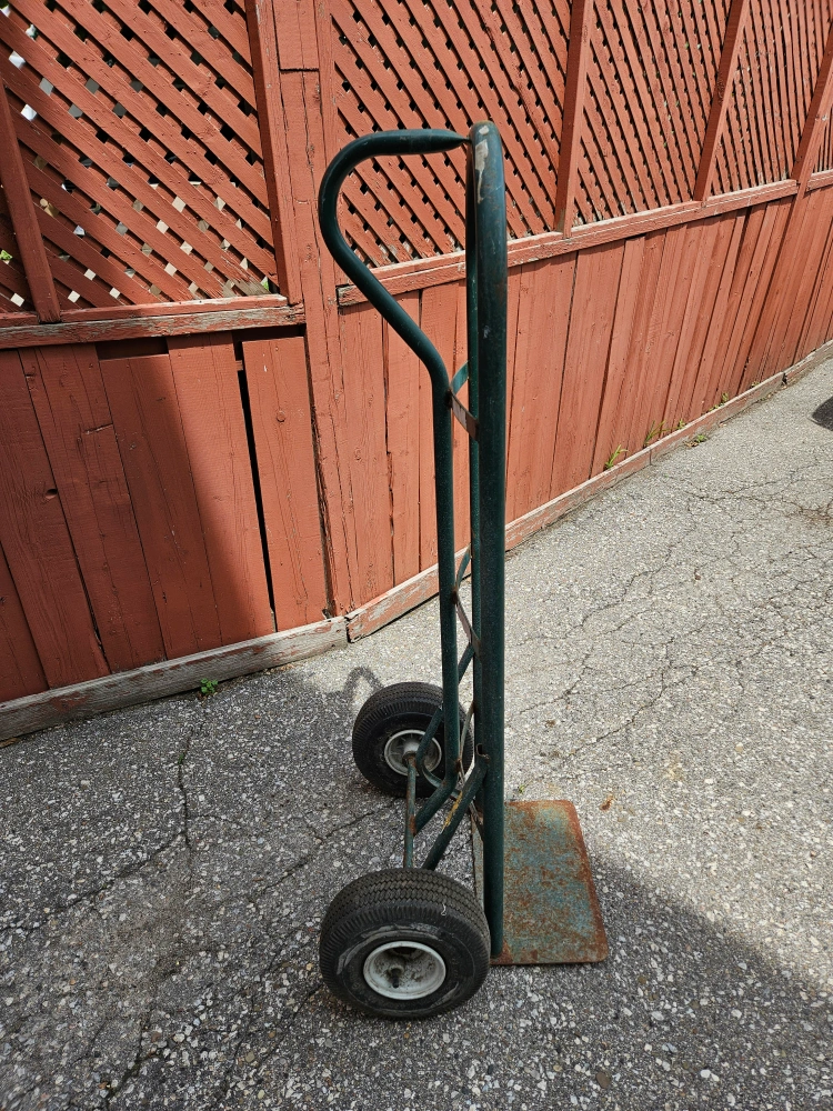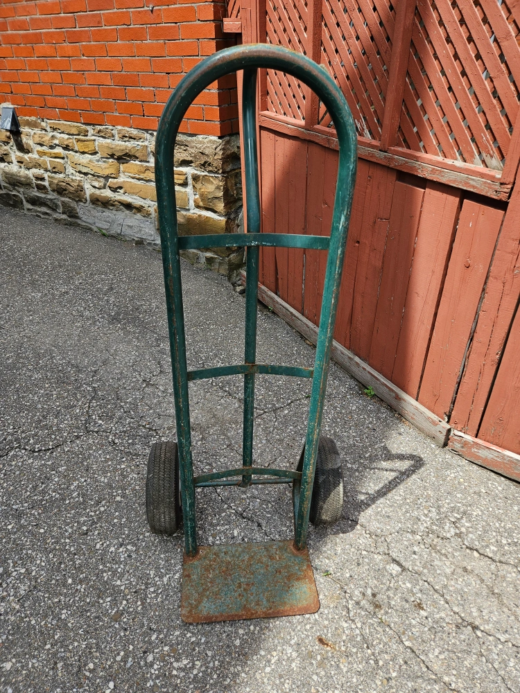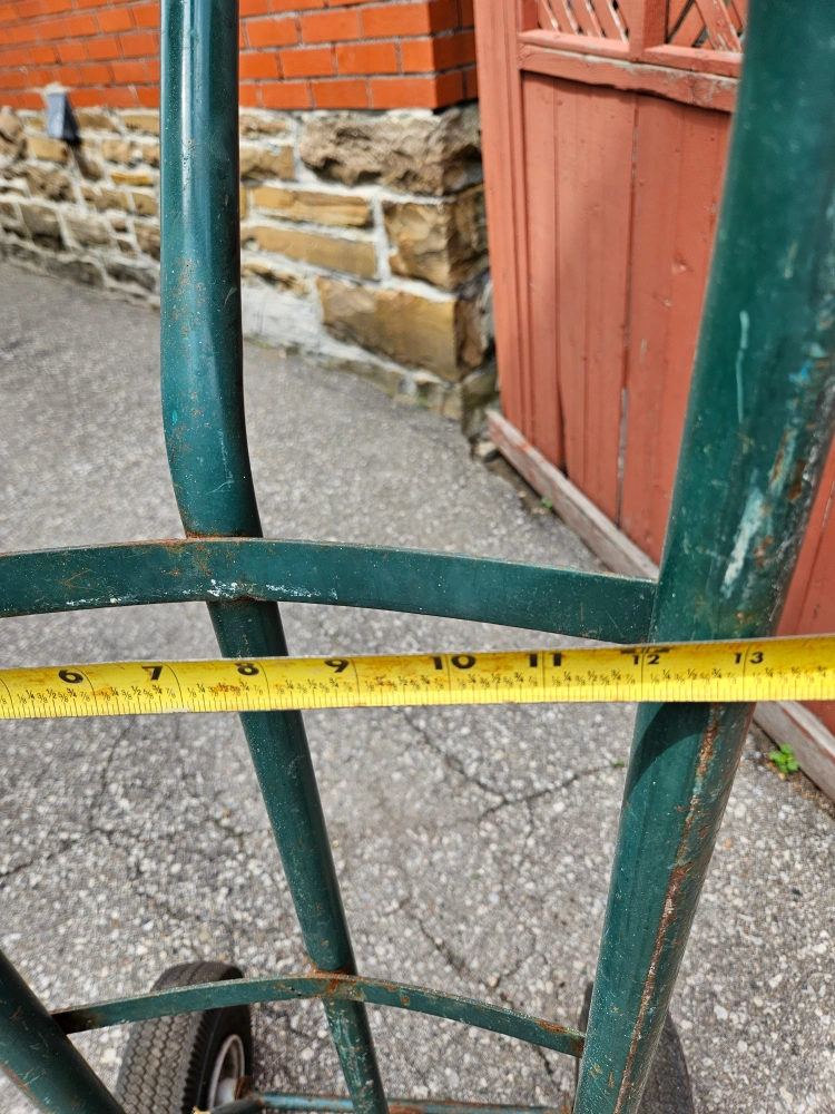 Selling a green hand truck dolly. It measures approximately 13 inches wide and 49 inches tall,18" deep Great for moving items around!