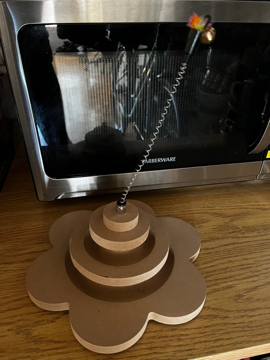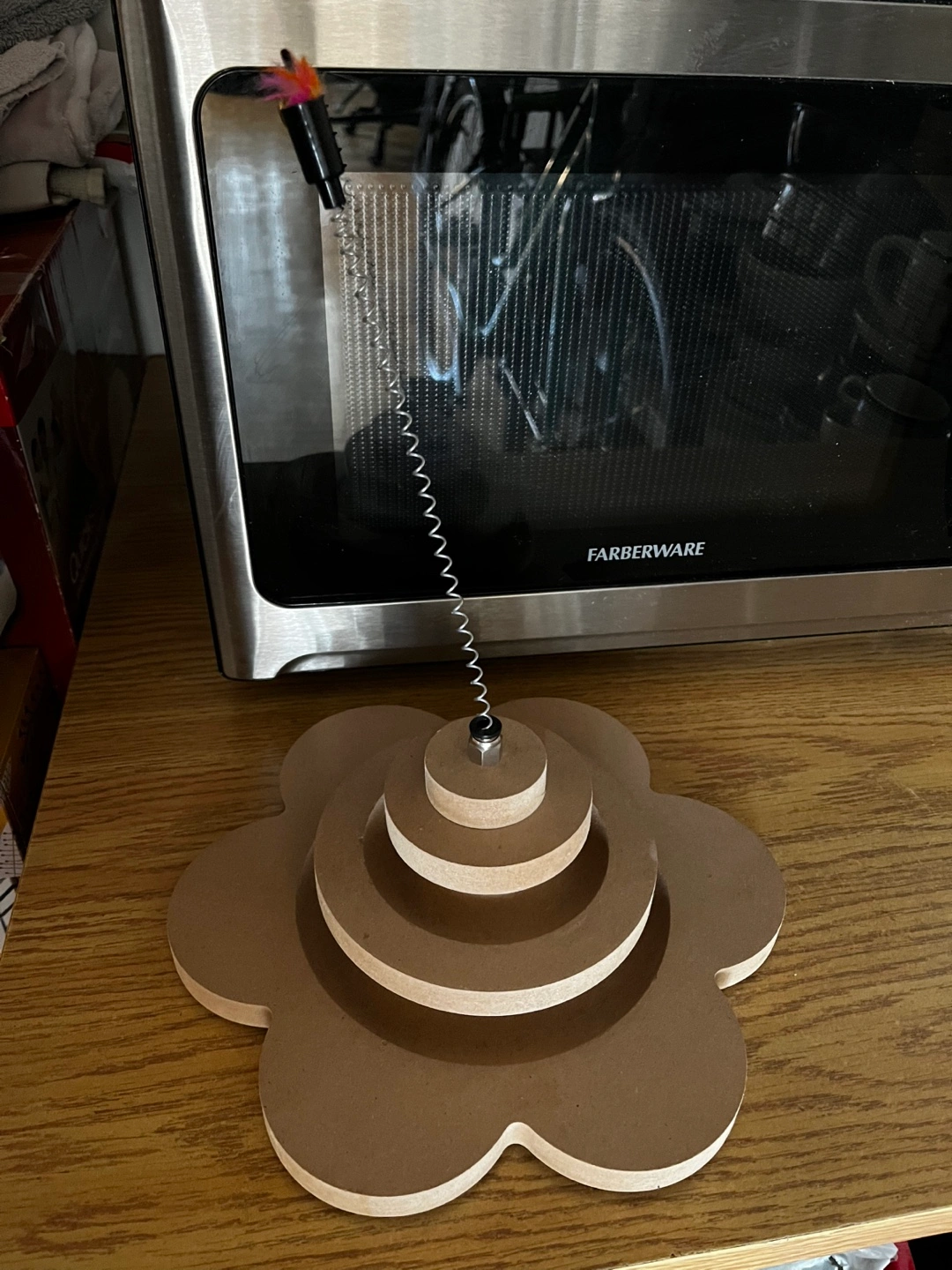 š¤Cat toy in great condition! It's a flower-shaped tower with a spring and feathered bell. š¤in gd condition