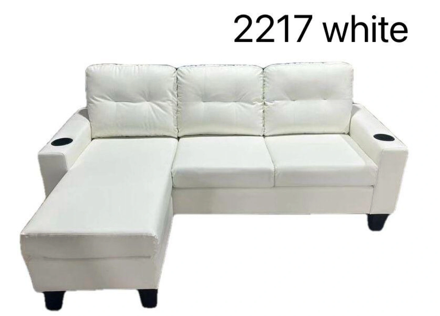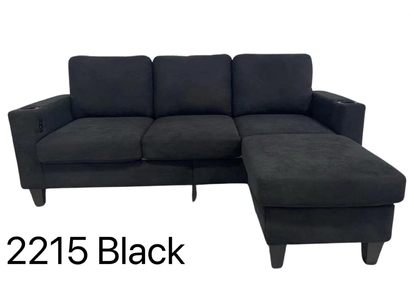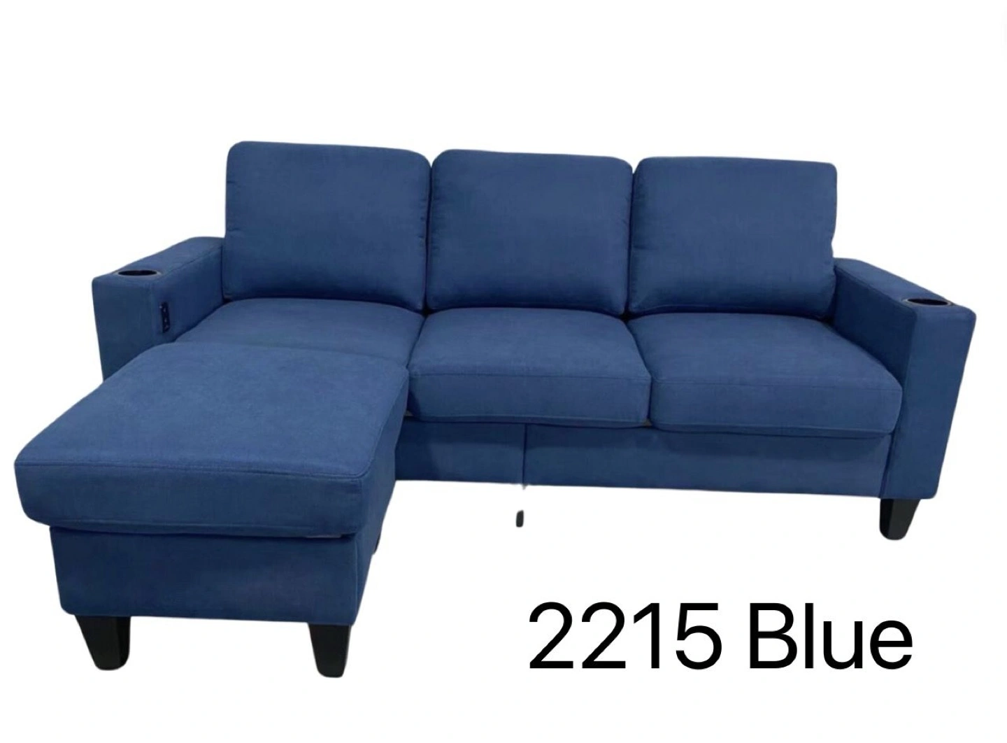Selling a comfy sectional sofa in blue! This stylish couch features a chaise lounge and convenient cup holders on the armrests. Perfect for a living room or entertainment space!