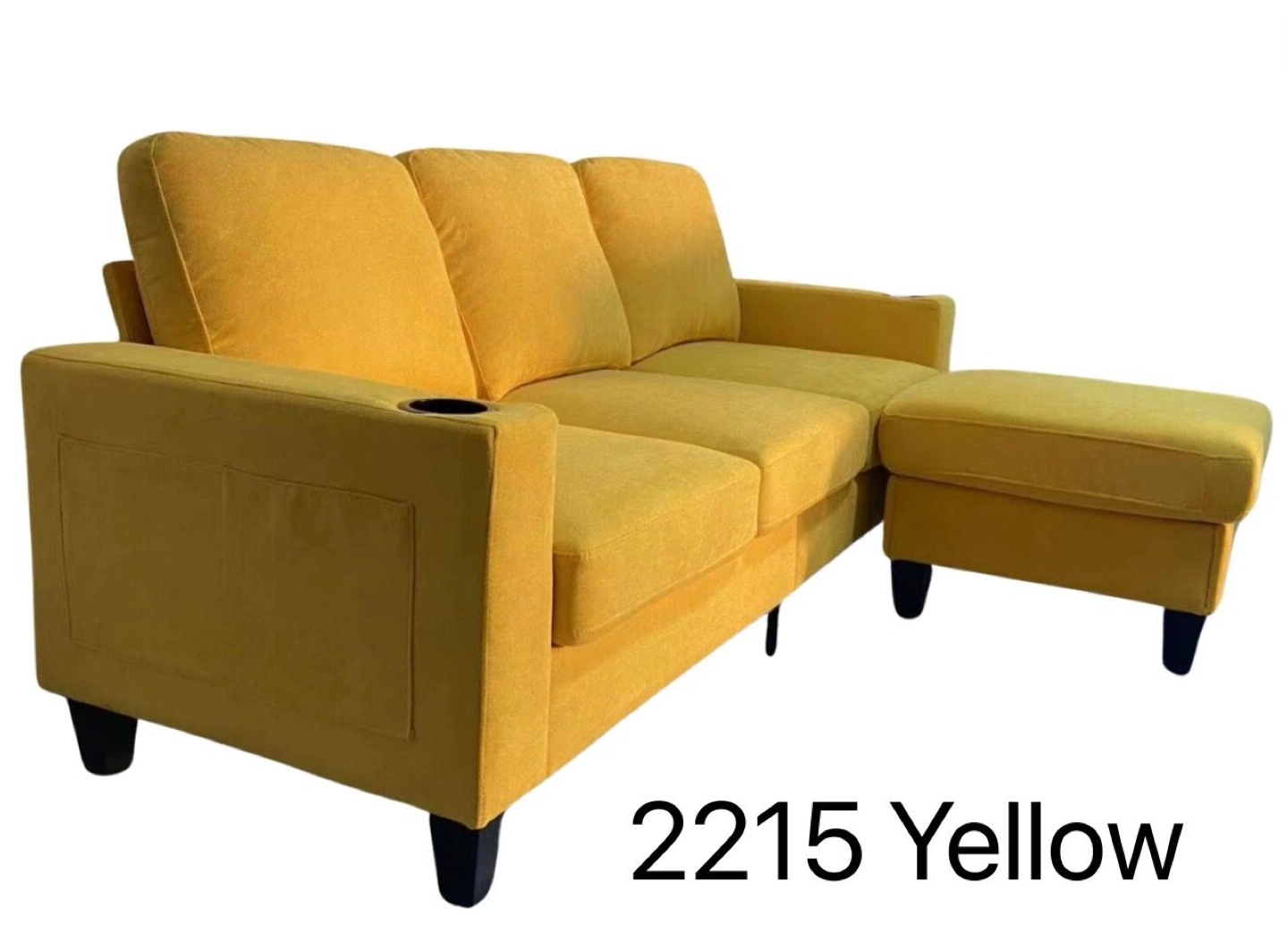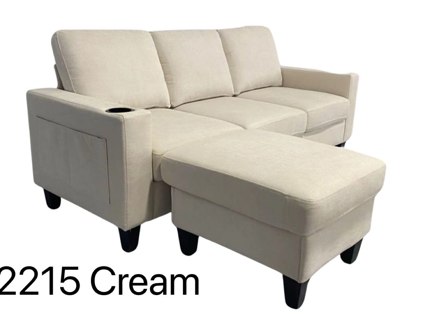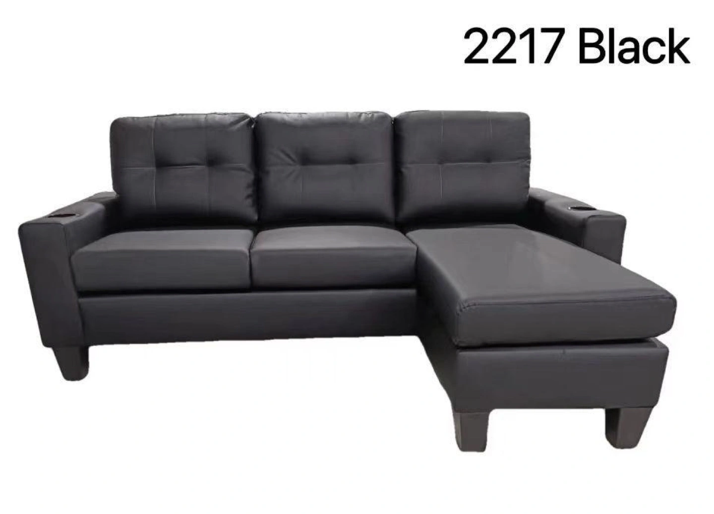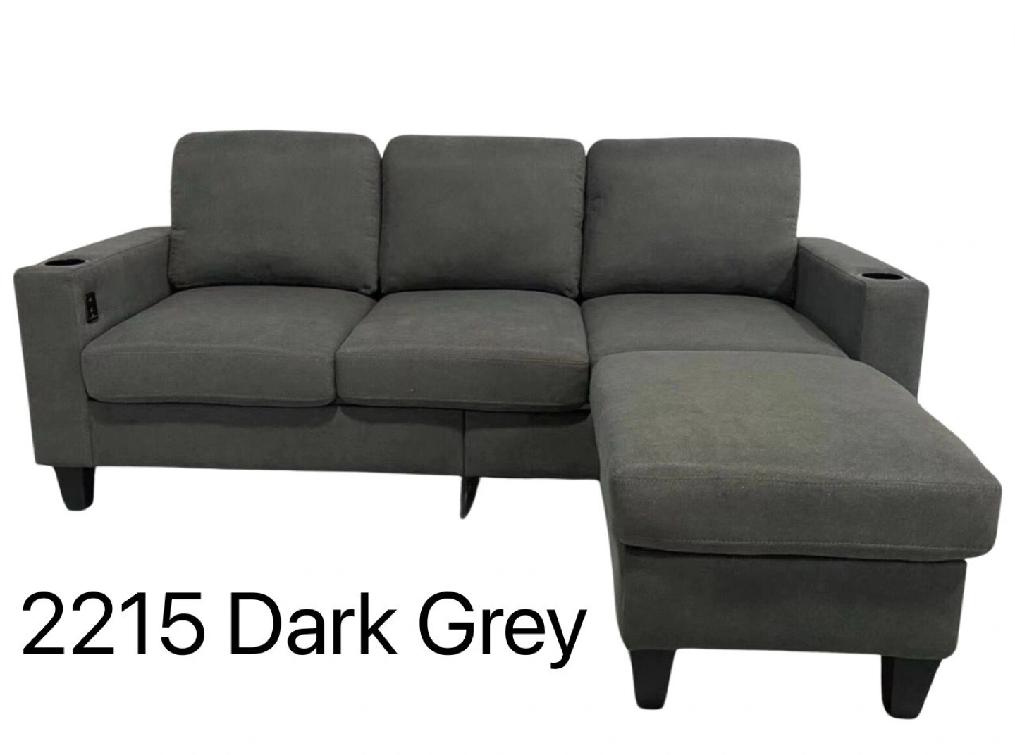 Selling a comfy sectional sofa in blue! This stylish couch features a chaise lounge and convenient cup holders on the armrests. Perfect for a living room or entertainment space!