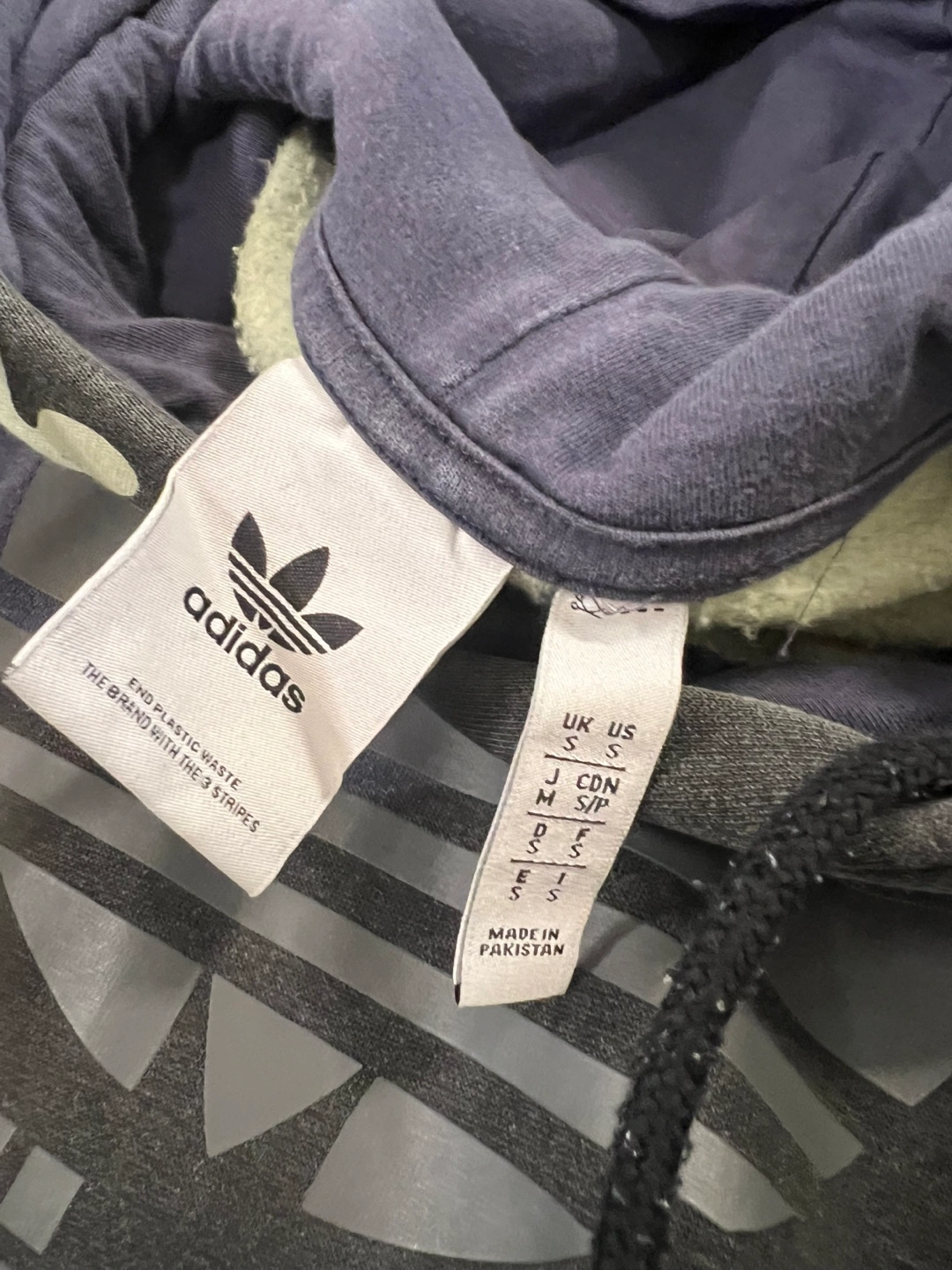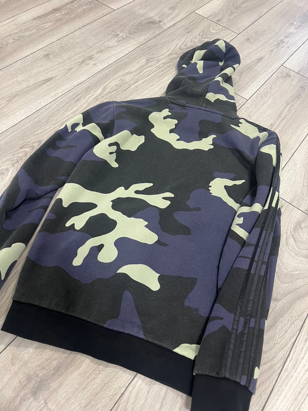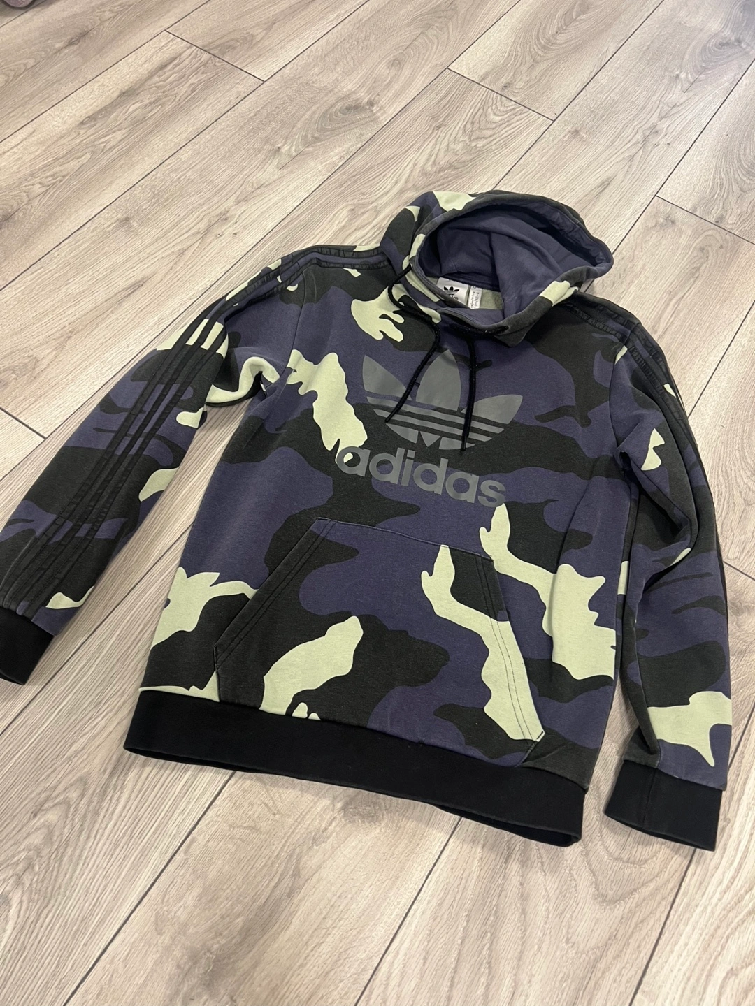 Two hoodies - One is an Adidas camo hoodie, and the other is a North Face hoodie. Both are size small and in good condition.