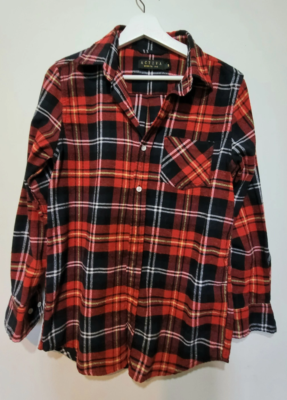 Here's a cozy Activa button up flannel shirt in a classic red and black plaid pattern! It's a size small and would be perfect for layering during the colder months. The shirt is in great condition and ready for a new home! ♡No Holds ♡First Come First Serve ♡Serious Buyers