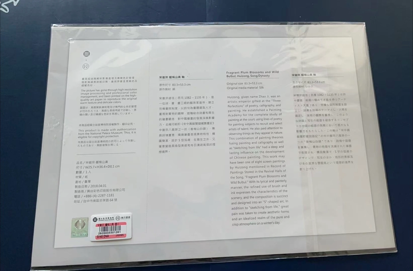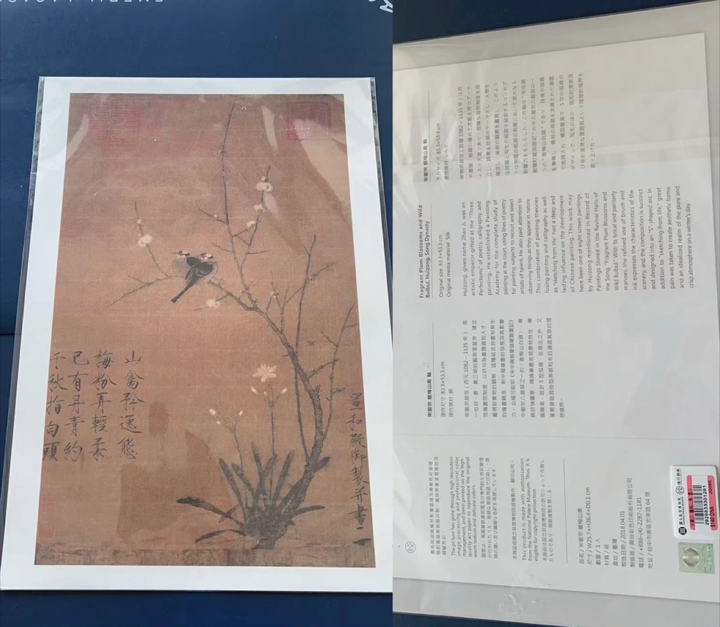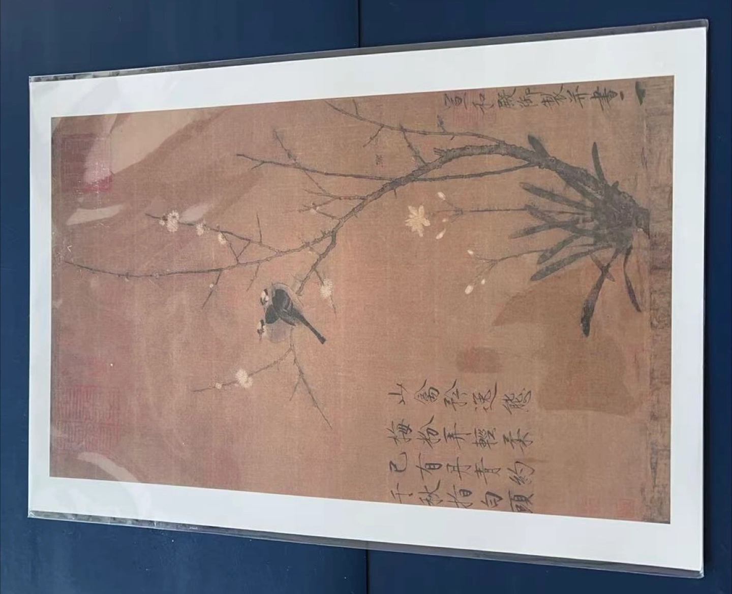 Print of Fragrant Plum Blossoms and Wild Bulbul, Huzong, Song Dynasty. The original size is 83.3 x 53.3 cm