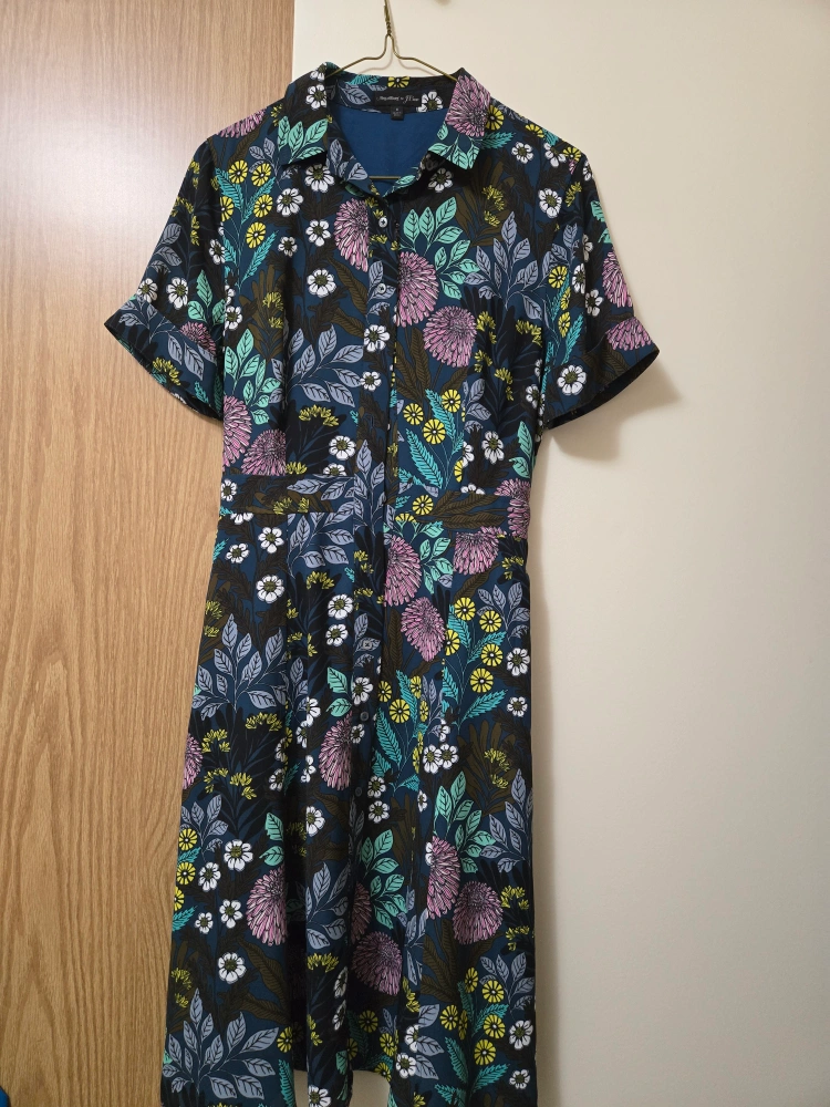 Selling a lovely floral dress from the Abigail Borg for J.Crew collaboration! It's a size 6 and features a beautiful, vibrant floral pattern on a dark background. Perfect for adding a pop of colour to your wardrobe.