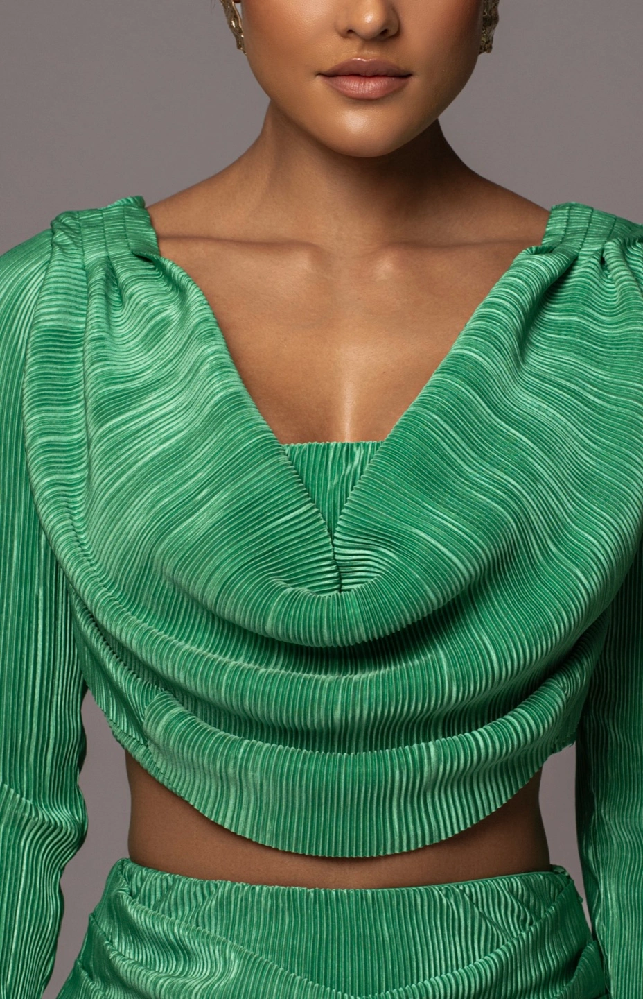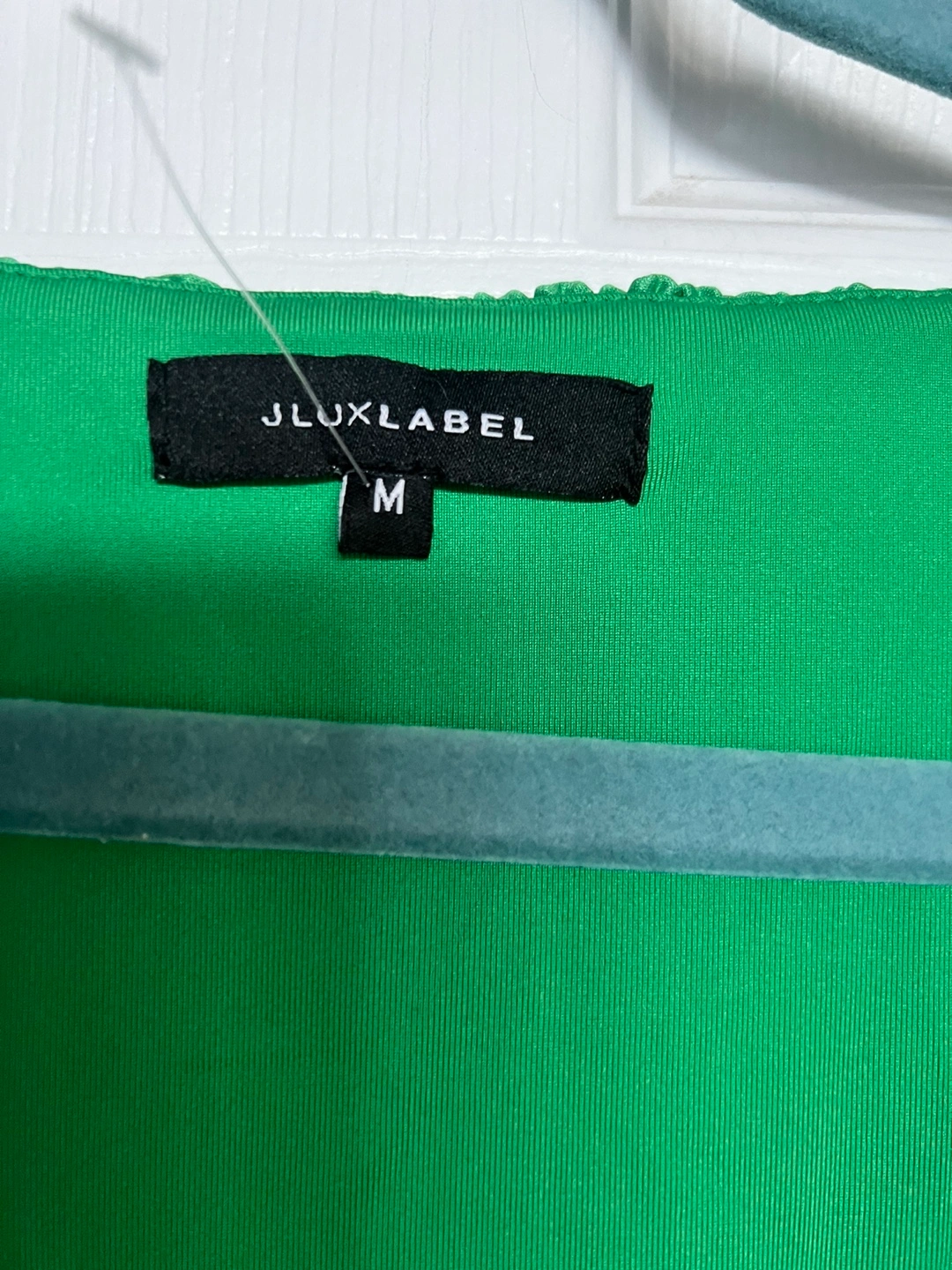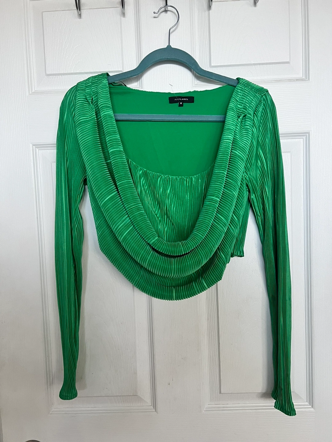 Selling a Jluxlabel green plisse top in size medium. It's a stylish and unique piece that would make a great addition to your wardrobe. The plisse texture adds a touch of elegance!