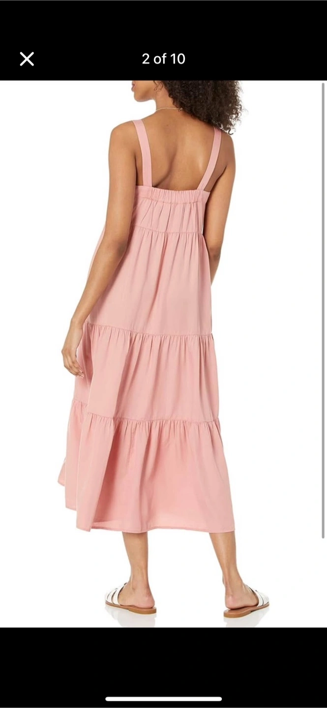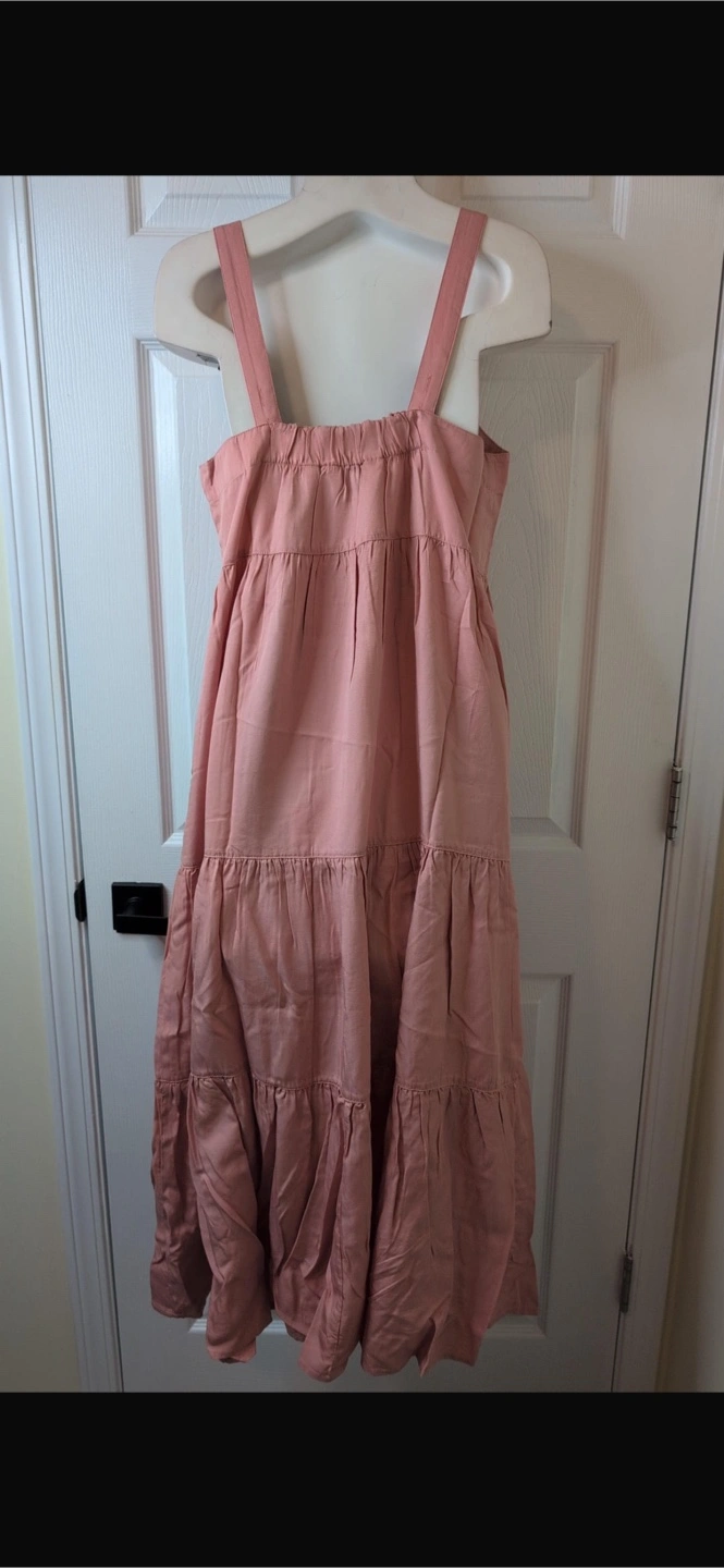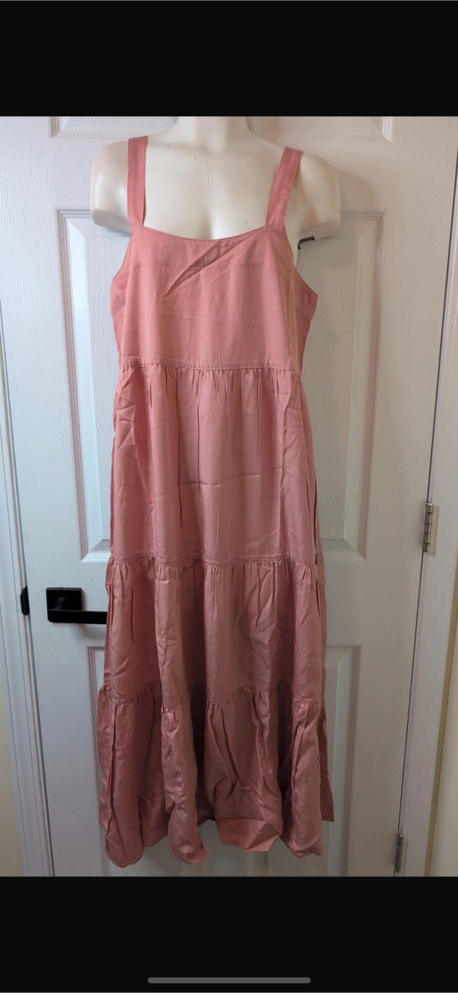 New with tag! Retails for $78. Available in size small and XXL.  Staples by The Drop Model is 5'10"/178 cm and wearing a size S This maxi dress measures 48"/ 122 cm long Loose-Fit: designed for comfort Flawlessly flowy tiers give movement to this easy maxi dress. Cut from buttery smooth Tencel lyocell blend featuring on-seam side pockets and hidden button adjustable length straps which can be worn crossed for added edge. Slip on your favorite flats and kick back in comfort and style. The Drop is your inside source for must-have style inspiration from global influencers. Shop limited-edition collections and discover chic wardrobe essentials from Staples by the Drop. Look out for trend inspiration, exclusive brand collaborations, and expert styling tips from those in the know. This is a The Drop tiered tank midi dress in a lovely pink colour. Perfect for a casual day out or a summer gathering! It's made from a comfortable material and features a tiered design that adds a touch of flair to your wardrobe