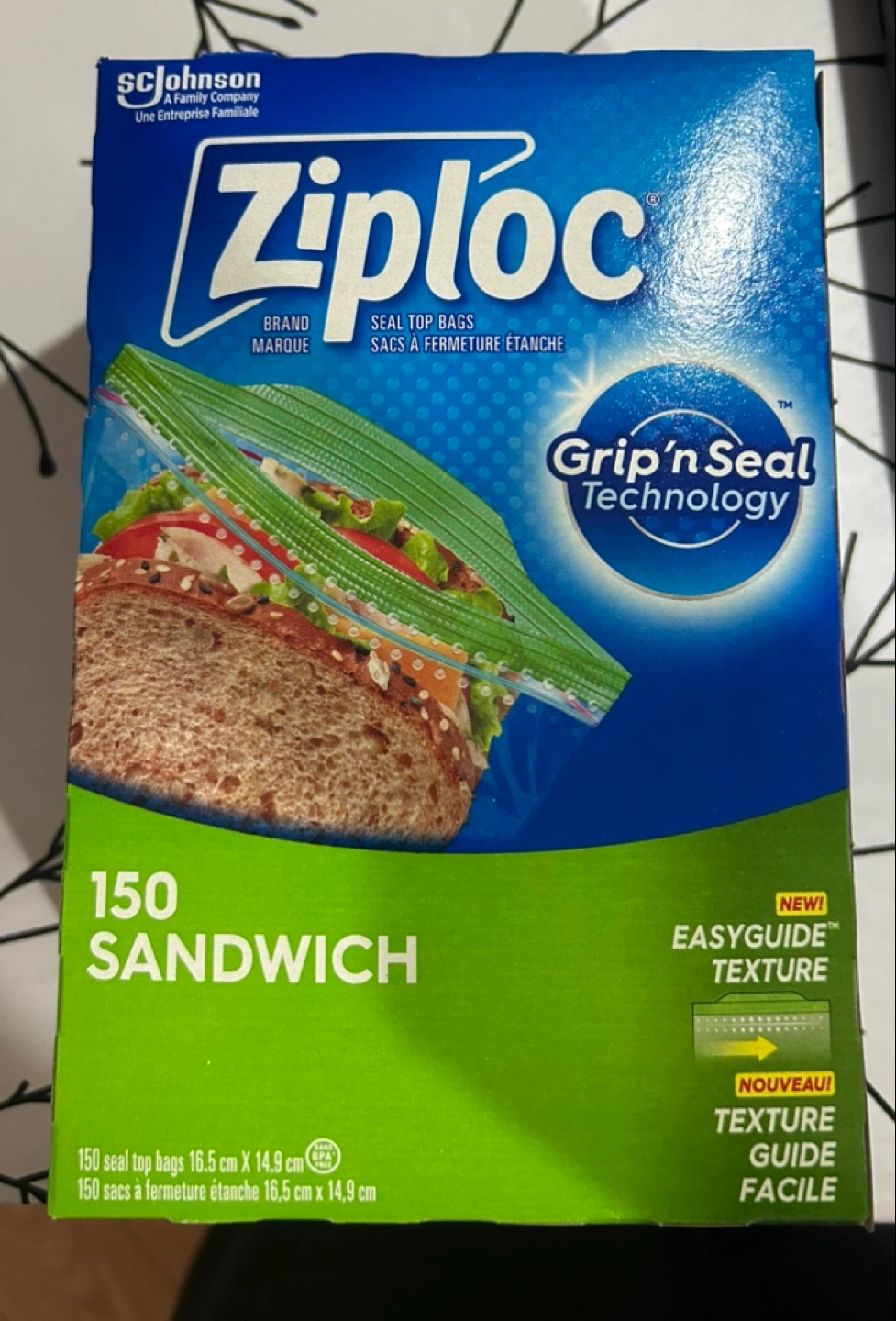 Selling a box of Ziploc sandwich bags! This box contains 150 seal top bags, each measuring 16.5 cm x 14.9 cm. Brand new unopened