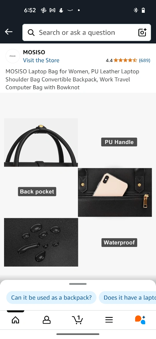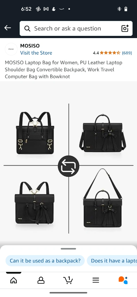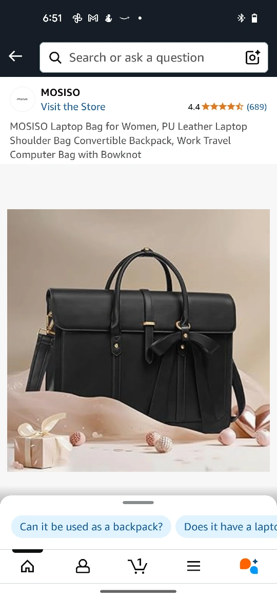 Selling a MOSISO laptop bag designed for women. It's a PU leather laptop shoulder bag that can also be used as a convertible backpack. Great for work or travel! It features a cute bowknot detail. Dimensions: - 15.74 inch x 11.61 inch x 4.13 inch - Fits 13-14 inch laptops