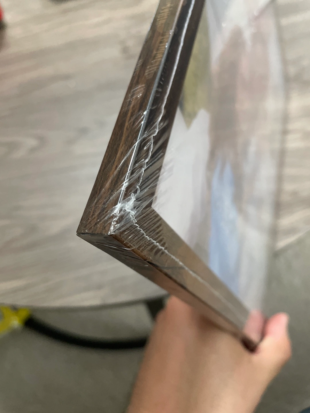 Selling a brand new picture frame still in its original packaging! It's an 8x10 size, which is about 20.3cm x 25.4cm. The frame has a nice, dark wood finish.