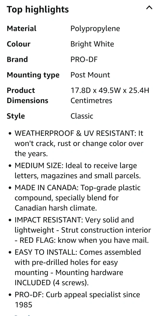 Selling a brand new PRO-DF rural mailbox! It's white and still in its original box (box is torn on one side). Perfect for adding a classic touch to your curb appeal. Easy to install and weatherproof, this mailbox is built to last! Regularly sells for $45 +tax. Own it for a much lesser price! Check out my other listings and bundle to save. ๐ ๐ป๐ธ Cash and pickup only on Brimley and Eglinton Rd E. in Scarborough.