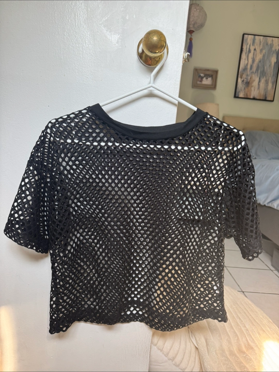 Bought forever ago but never worn! Fish net crop top that’s great for layering. Size small/medium (oversized fit)
