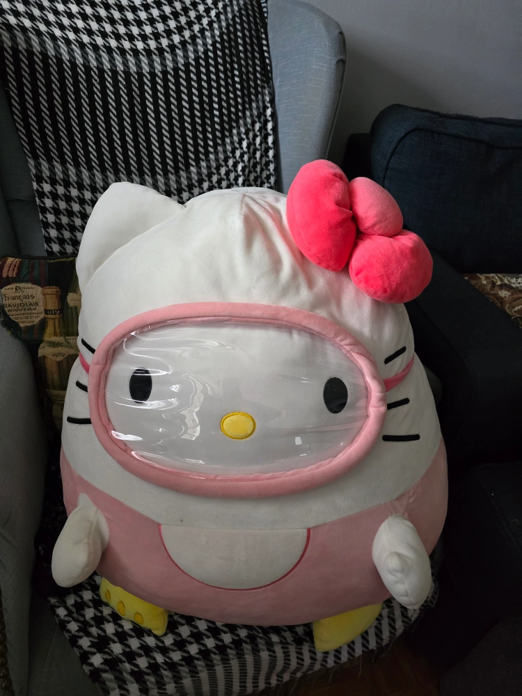 Super cute Hello Kitty plushie! It's in great condition and features a unique design with goggles and a pink bow. Perfect for any Hello Kitty fan or as a cuddly addition to your collection Pickup preffered