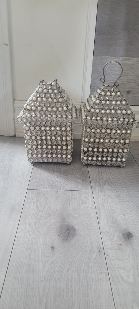 Selling a decorative beaded house lantern. It's in great condition and would look lovely in any room. Perfect for adding a touch of sparkle to your space!