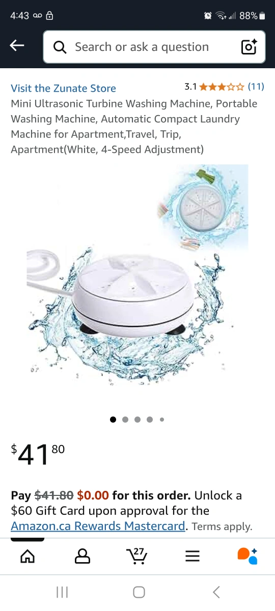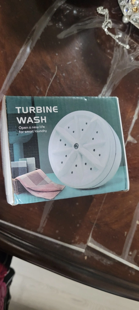 Selling a mini ultrasonic turbine washing machine! It's a portable and automatic compact laundry machine, perfect for apartments, travel, or trips. The original price was $41.80. It has a 4-speed adjustment and is in great condition. Box included