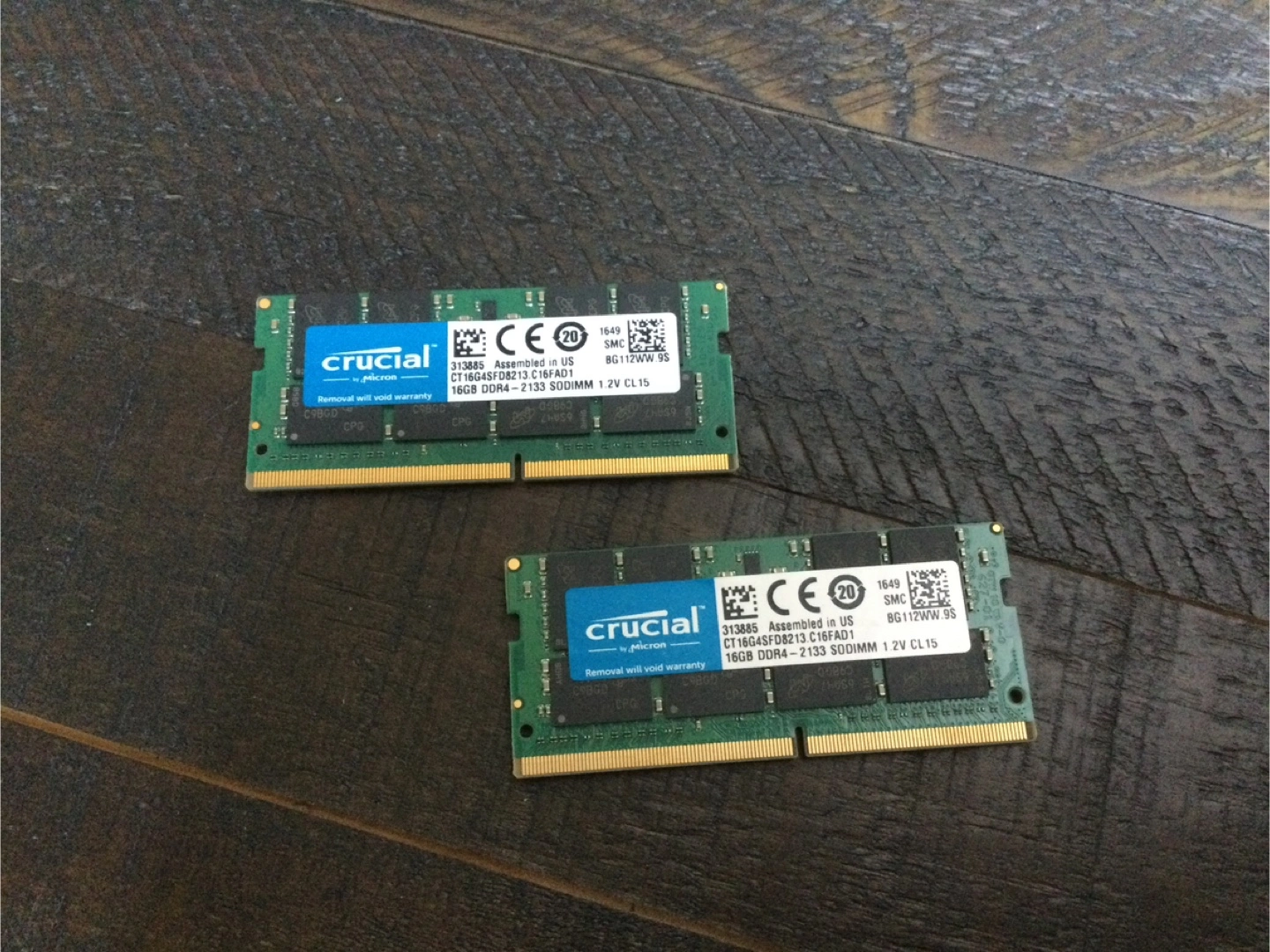 Two sticks of Crucial 16GB DDR4 RAM. 2133 MHz, 1.2V, CL15. Assembled in the US. Selling both for $75 Pickup in North York near Don Mills & Finch