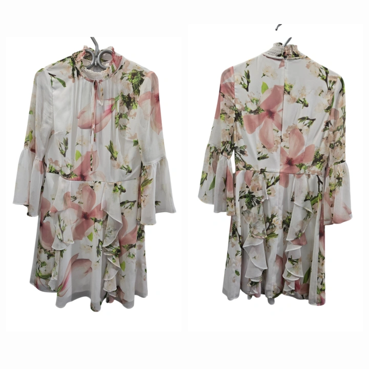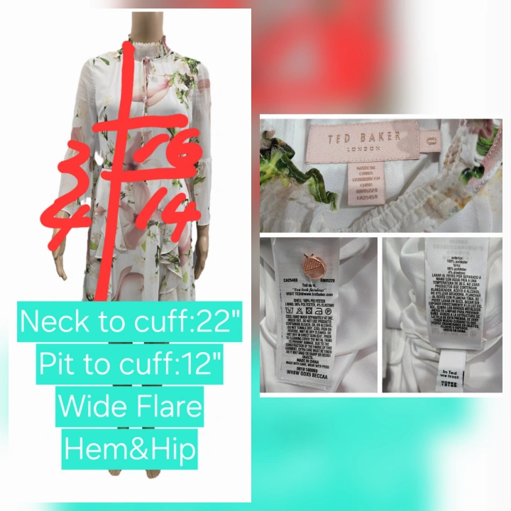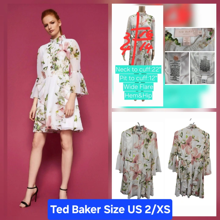 Ted Baker London White Beccaa Harmony Bow-Neck Ruffle Dress Size XS Approximate full measurements are shown in the picture. Ted Baker size 0. Judging by the measurements and fit on the mannequin, it perfectly fits a US size 2/XS. Condition: 8.5/10 No visible flaws, but some wrinkles. Fabric type: 100% Polyester Care instructions: Hand wash or dry clean. Origin: Imported Closure type: Zipper Description: Hidden back-zip closure; button-loop closure at neck. Smocked stand collar. Three-quarter sleeves; ruffle floral details; knee-length. Original Retail Price : CAD 456 including taxes Pick Up : North York Finch Subway Station Or Near Downtown Subway Line or Near Queen East and Logan Update : If you are a Downtowner (especially in the Queen East area) and need or want to try on items to make sure they fit, arrangements can be made to meet at my storage unit. You can also have a look at my other unlisted designer items at the same time. Bundle 3 or more items to receive discounts. Discount prices will vary depending on the items you bundle.